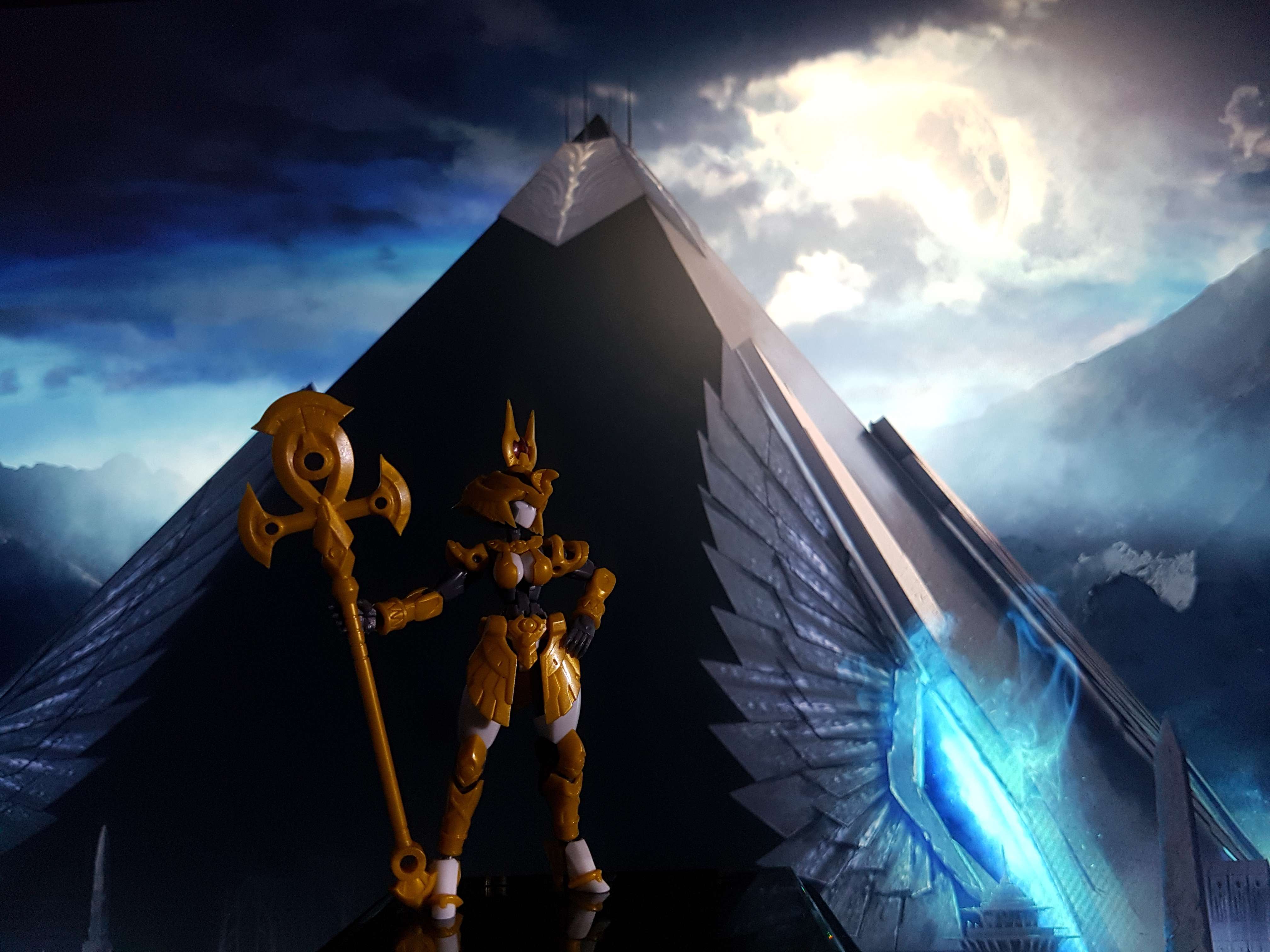 Finished my second model kit! Number 57 Armored Puppet Esis! Fun build, but it is TINY! However it is very well articulated and detailed for it's size. The base figure is great, and the sarcophagus/sphinx is awesome. The throne and display base are perfect additions!
