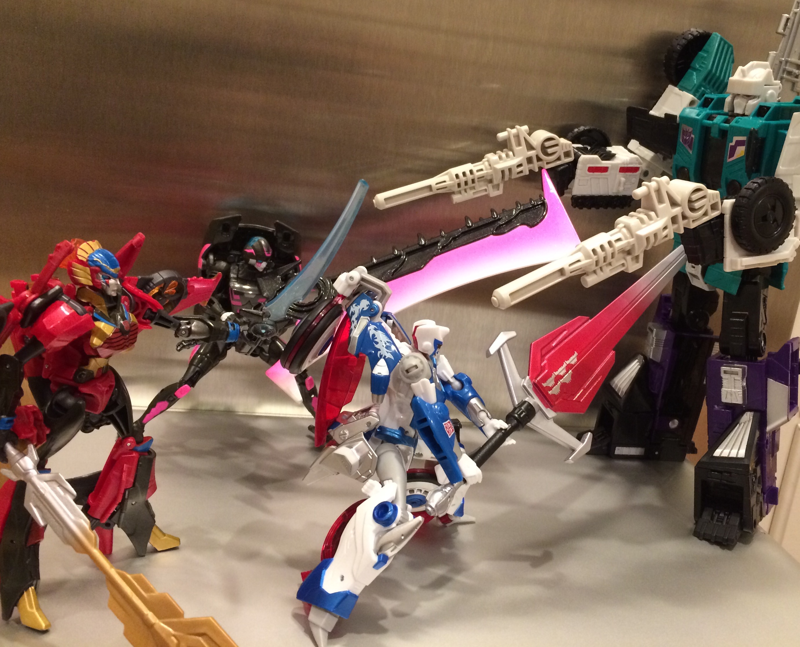 That photo shoot was s'posed to be allzabout Sixshot....but they totally stole the show! That's my 3rd Arcee (also got Generations & LG), but she looks scary-cool with the back-in-black look. Those are my first and currently only incarnations of Windblade & Chromia!