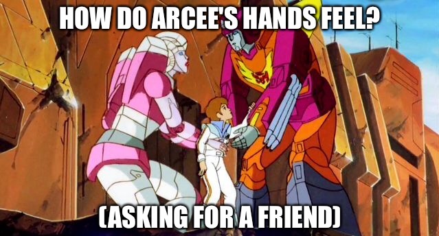 That got me thinking - all those times Arcee, Optimus, Hot Rod or any Transformer picked up a human, what did their hands feel like? Did it vary by the gender their spark identified with, or their alt mode?