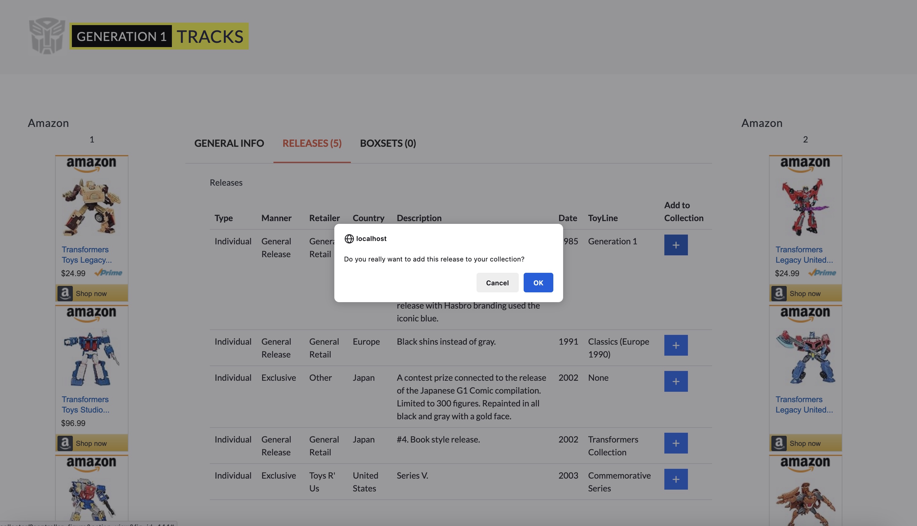 Sorry it's been so long. I've been working on it consistently, just added G1 Optimus Prime and 28 releases for it. I'm fairly sure, there's some missing, even on TFWiki, but for now I've added all the ones I can find.
