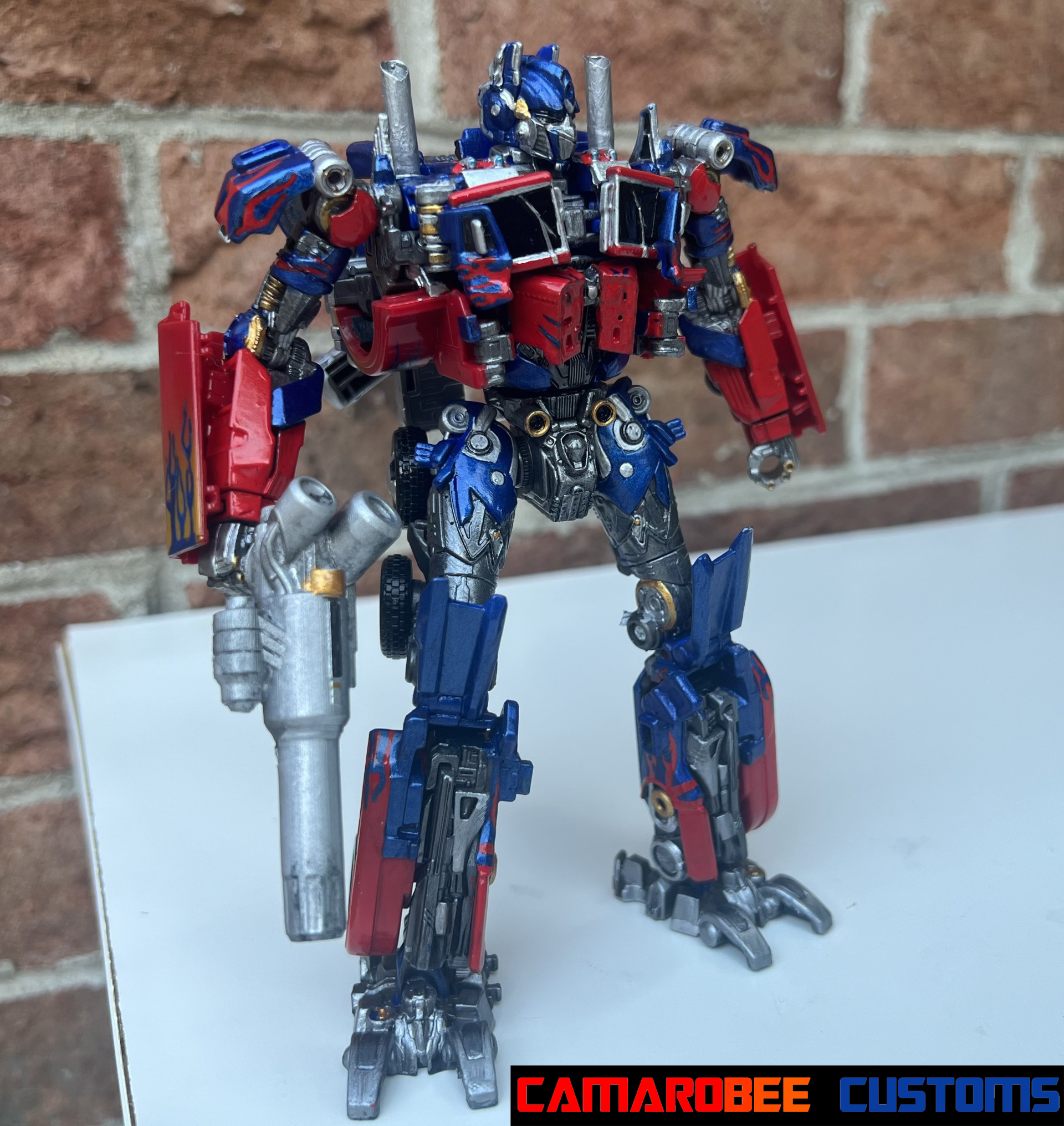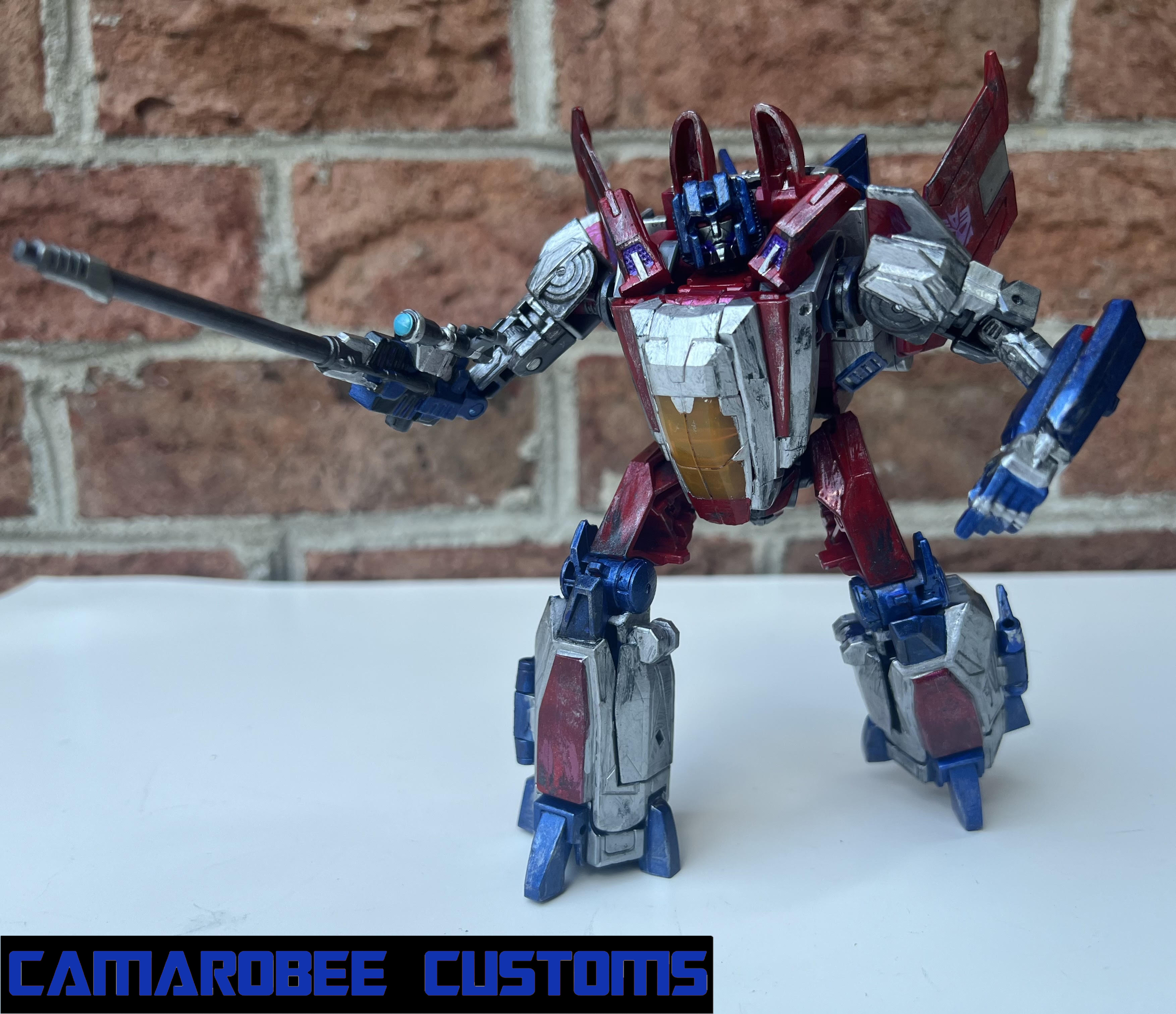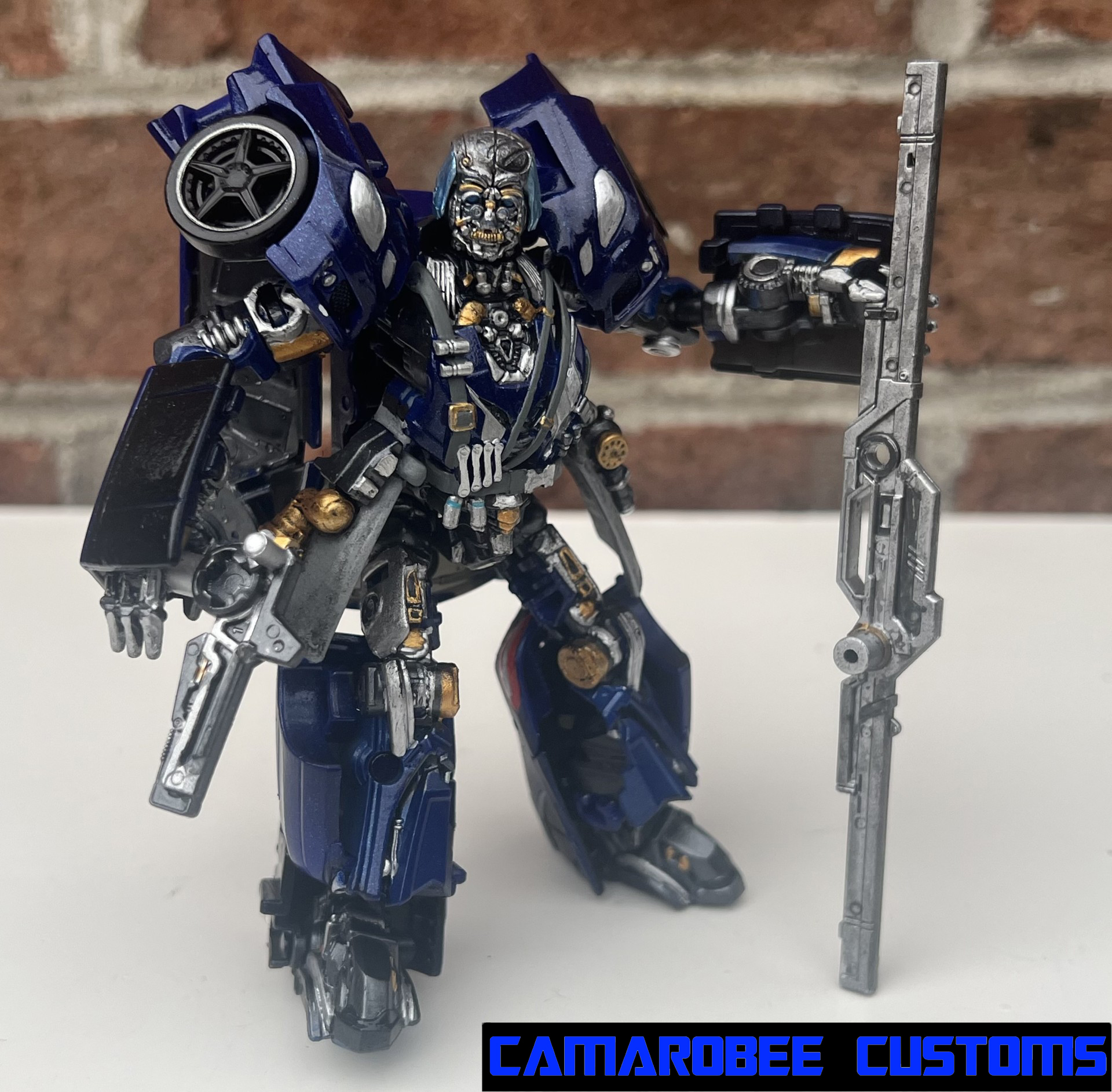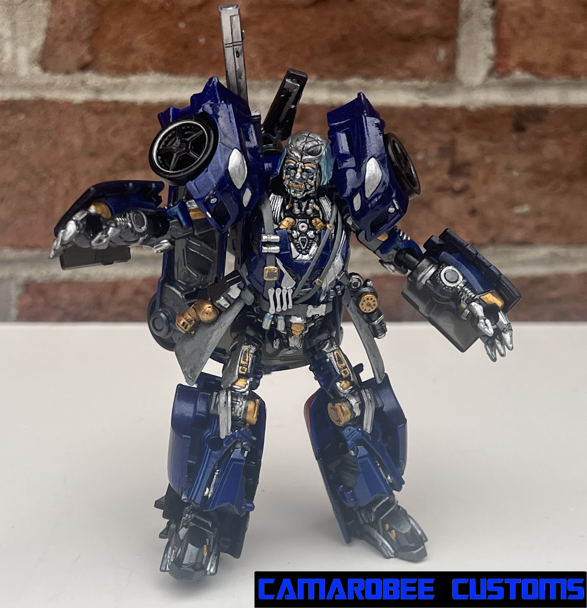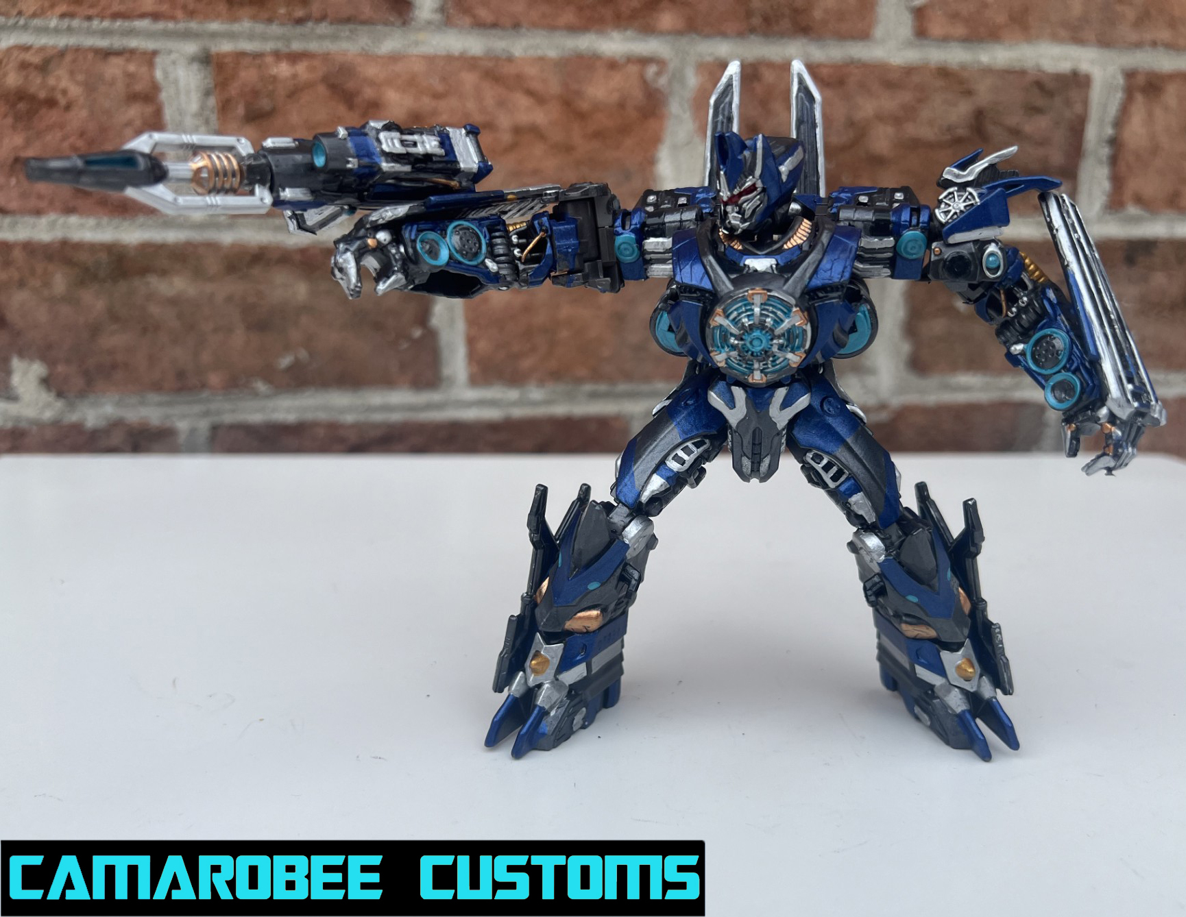 This is a project I've had on the back burner for a little while now, partially because of how many other customs of this guy are out there, but also because I didn't have as much of a plan for what I wanted to do. The detail that moved this project to the main burner was actually the silver trim around the windows - I really like how it looked and decided to get this project wrapped up. I added a lot of gunmetal throughout since ROTB prime has more gunmetal on him than the BB design, and for the blue I ended up mixing several shades of metallic blue together to get somethign I liked. Somethign interesting happened with the gloss coat too, where it deepened the metallic properties of the paint and leading to a really cool result. I used this same blue mixture on another custom you'll be seeing soon!