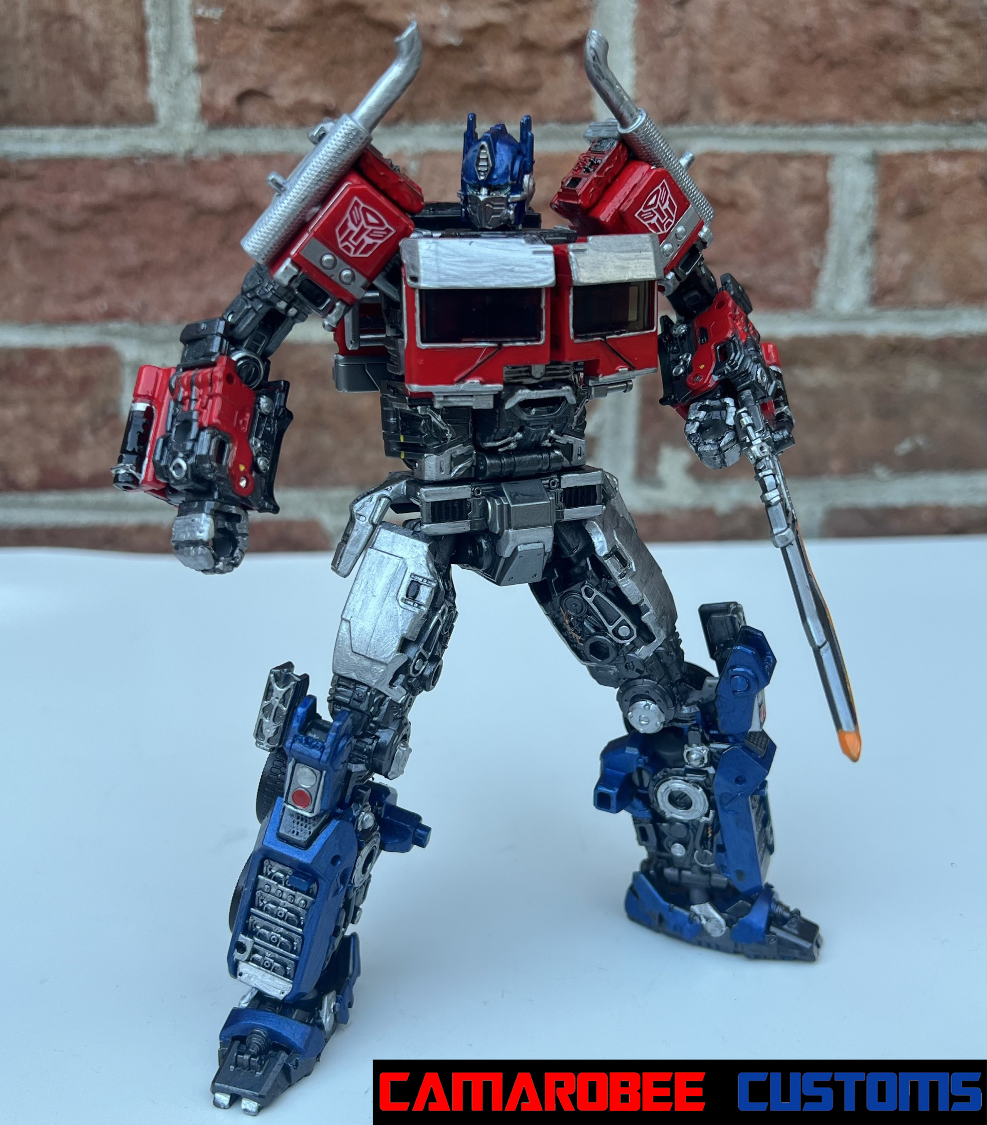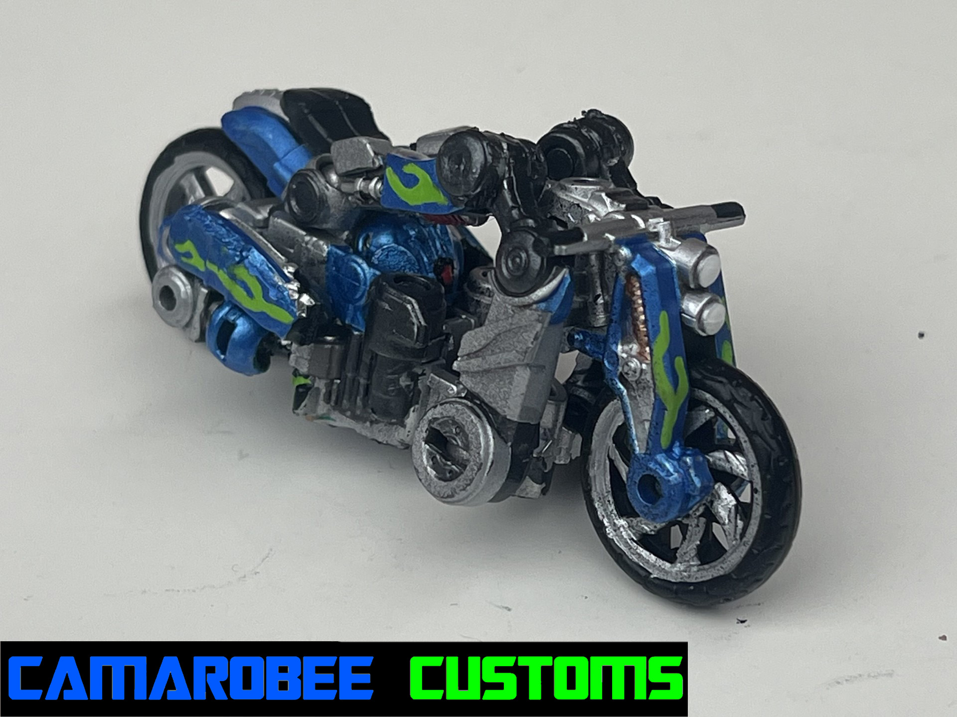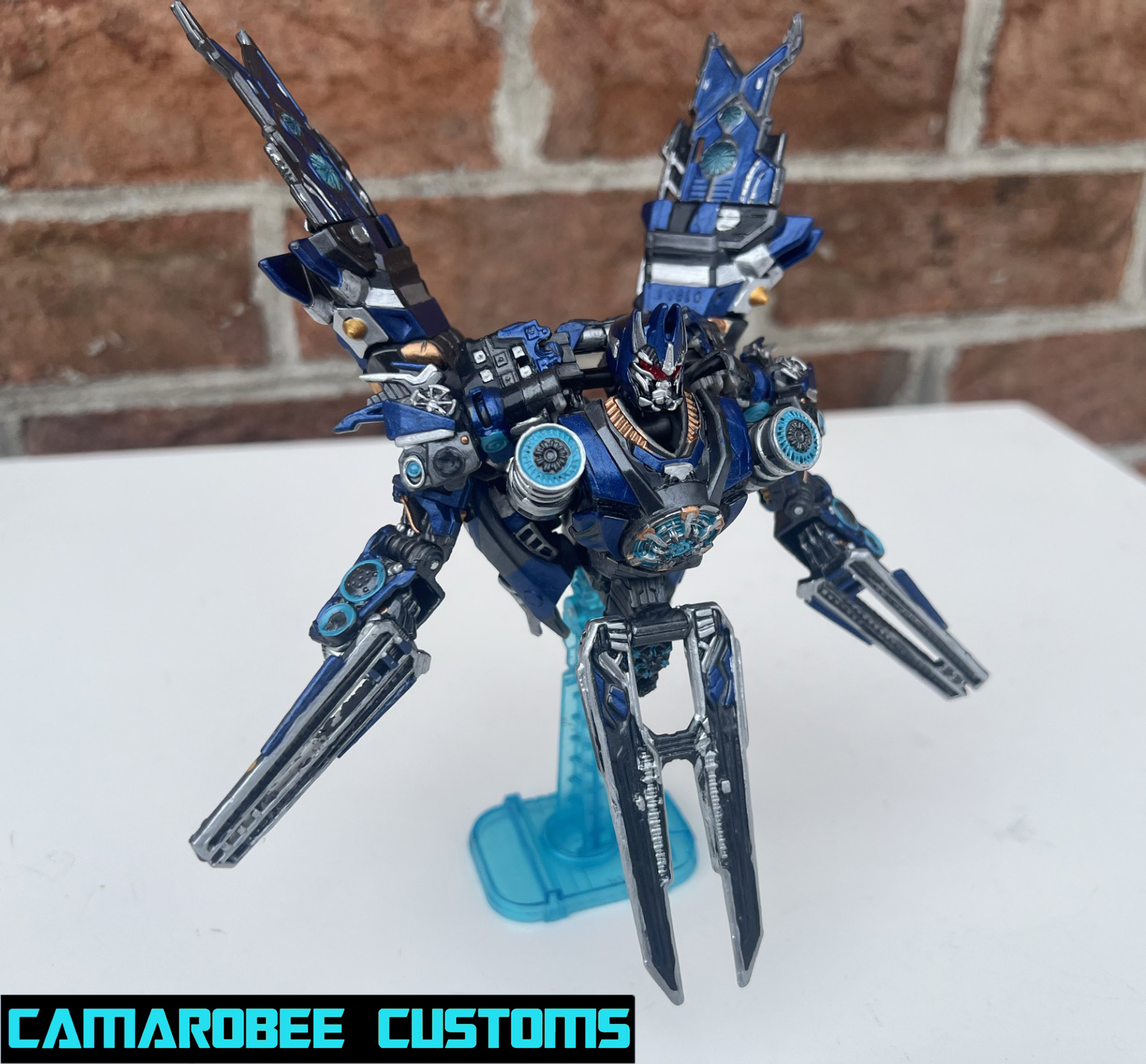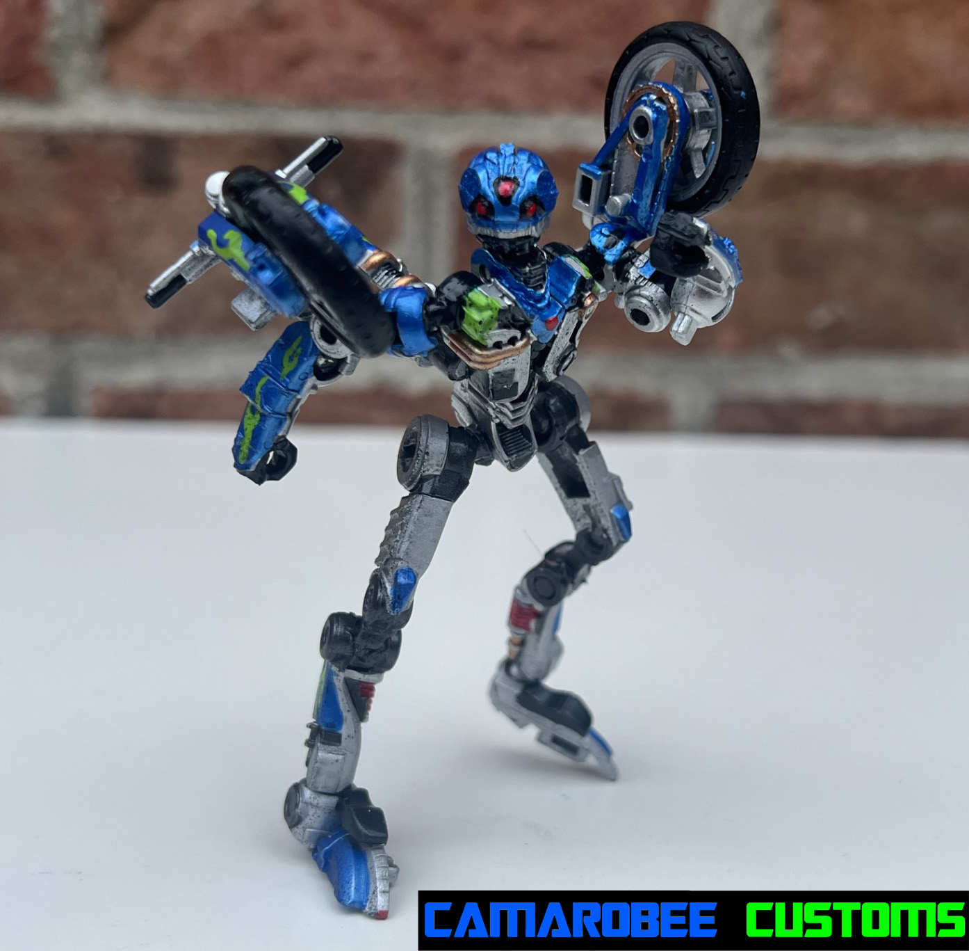This is a project I've had on the back burner for a little while now, partially because of how many other customs of this guy are out there, but also because I didn't have as much of a plan for what I wanted to do. The detail that moved this project to the main burner was actually the silver trim around the windows - I really like how it looked and decided to get this project wrapped up. I added a lot of gunmetal throughout since ROTB prime has more gunmetal on him than the BB design, and for the blue I ended up mixing several shades of metallic blue together to get somethign I liked. Somethign interesting happened with the gloss coat too, where it deepened the metallic properties of the paint and leading to a really cool result. I used this same blue mixture on another custom you'll be seeing soon!