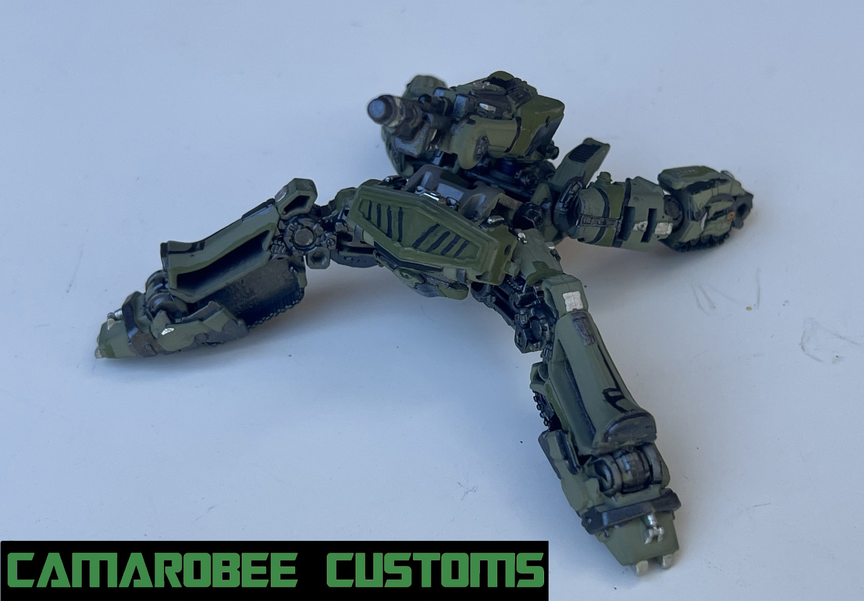 Got this guy about a year ago in a BOGO sale and wasn't sure what to do with it at first. I decided to reference a more obscure piece of Bayverse concept art, some of 2007 video game Shockwave's other color schemes! Ken Christiansen's concept art for the character has variations in black, purple, and green. I went with the latter option for this repaint!