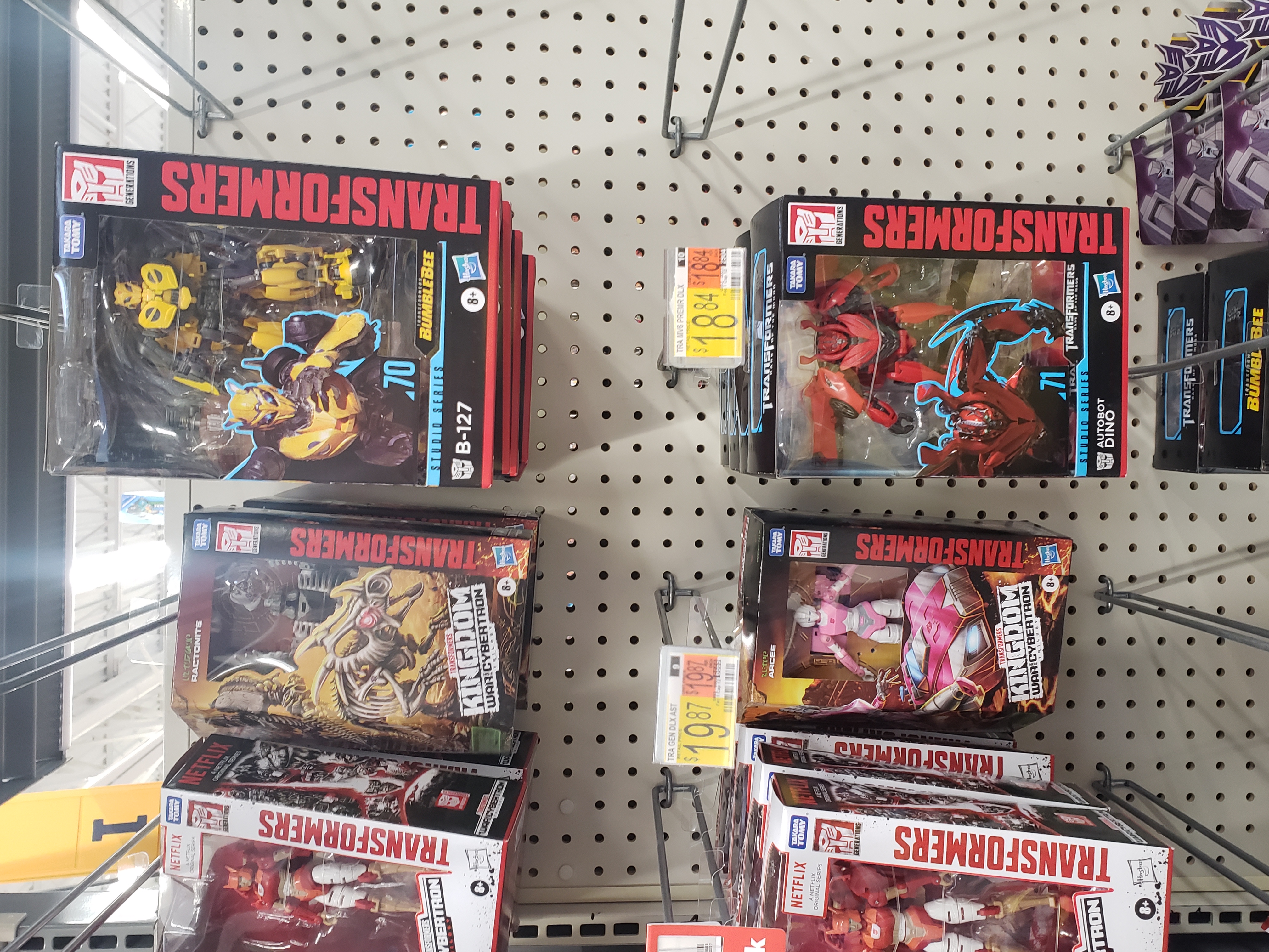 Finally spotted new stuff at the Walmart in Nixa. Well I should say new to me seeing for the first time. They had SS 86 Hot Rod x2, SS 86 Scourge (1), SS B-127 (plenty), and SS Dino (plenty) on the shelf. In addition, they had Kingdom Arcee and Ractonite! That was it!