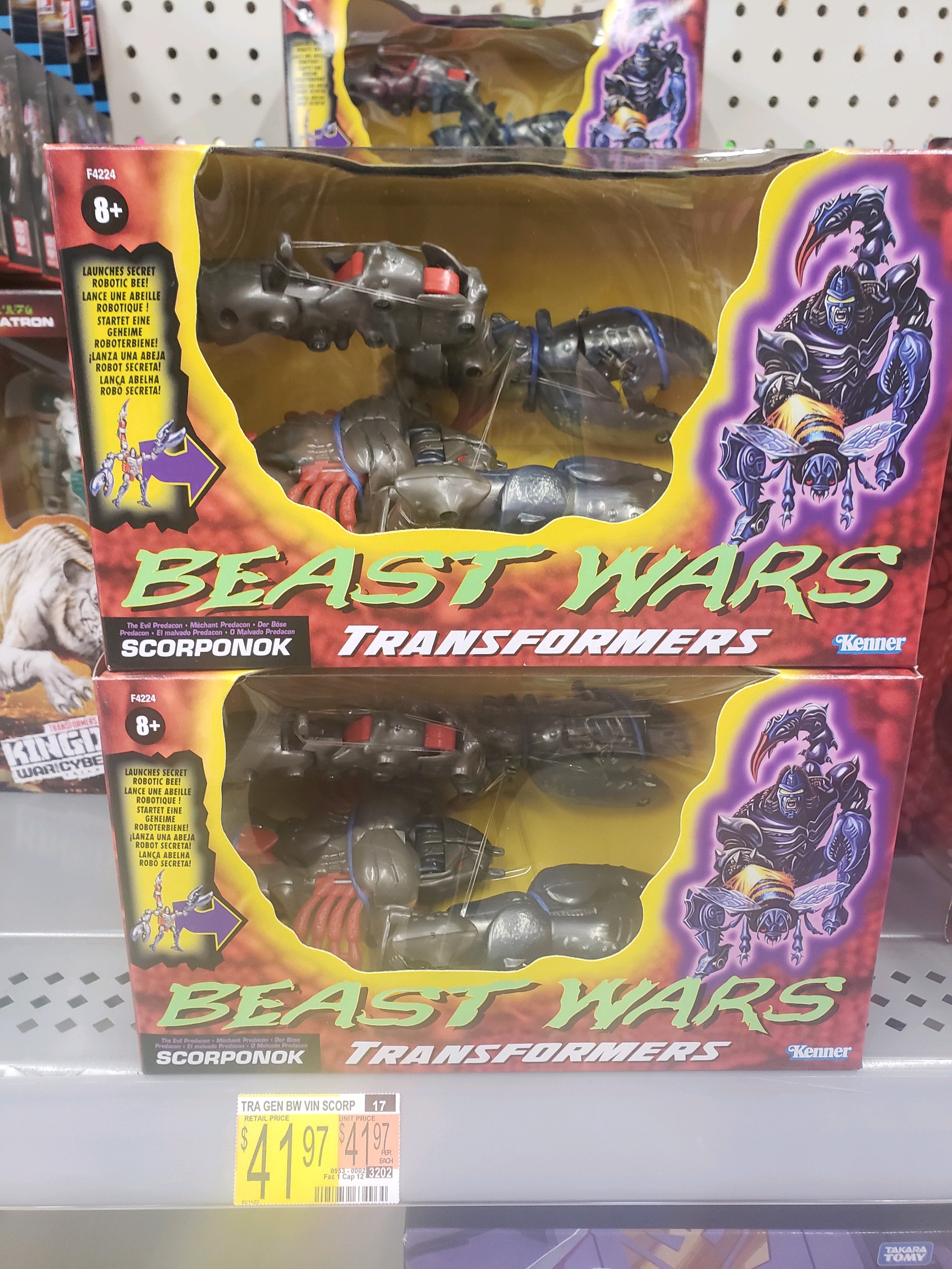 Got lucky today and spotted Beast Wars reissue Scorponok and Tigatron. They where at a Walmart in Springfield off South Campbell Ave. They only had two of each at the time i saw them. Well, I should there is only one Scorponok left now. Unfortunately, I wasn’t able to take a photo of how they where on he shelf.