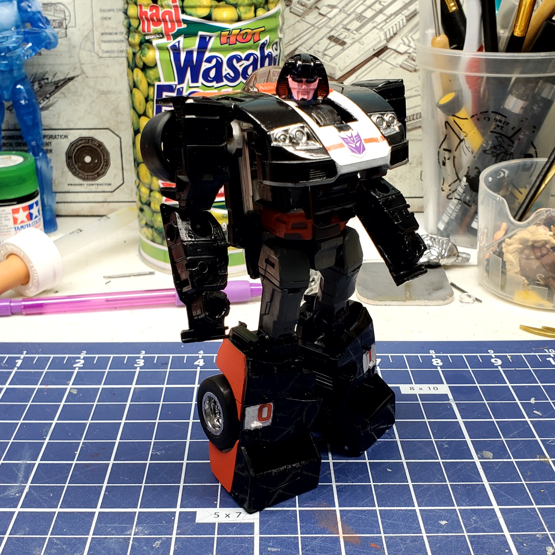 *Edit - I forgot to mention that I used the Richochet version of the mold since it was mostly black. Also, the entire upper windshield/roof area is actually molded in translucent plastic and painted from underneath and on the surface with tampos on the surface. Hope that helps if you decide to repaint any of the Jazz mold(s).
