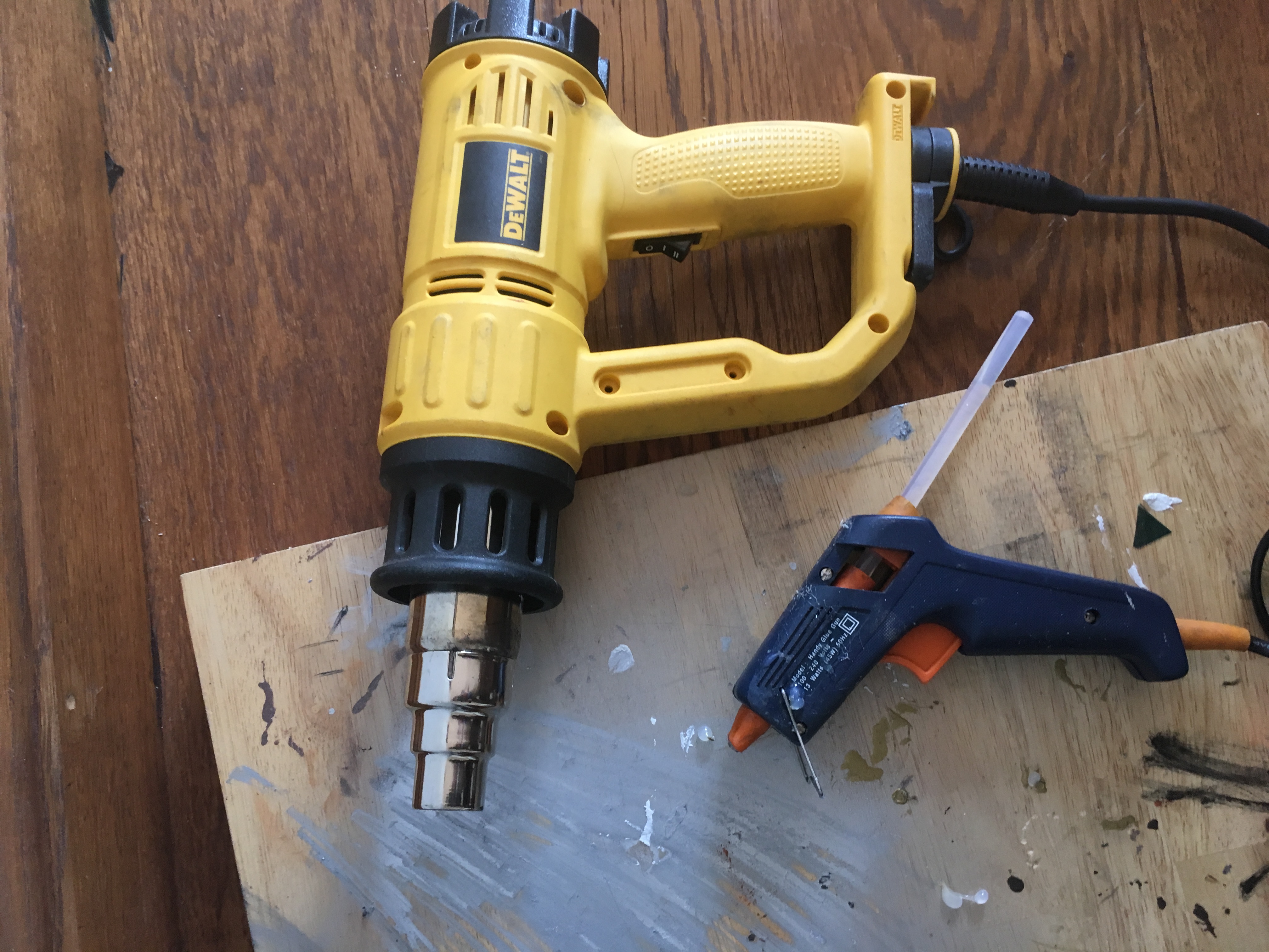 I use a heat gun which can vary in price, however a good ol' hair dryer can do the same trick but can take longer. When heating be careful not to hold to close as the foam can burn, you can see this in one of the pictures below.