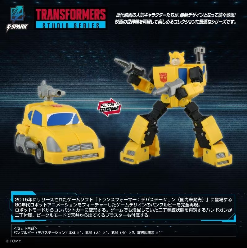 Studio Seies Transformers Devastation Bumblebee – This figure perfectly recreates the Bumblebee from the 2015 game “Transformers: Devastation” (not yet released in Japan), featuring the 80s robot animation design. Transforms from robot mode into a compact car. It also comes with two handguns to recreate the dual-wielding pistols seen in the game, and a blaster that pops out from the ceiling in vehicle mode.