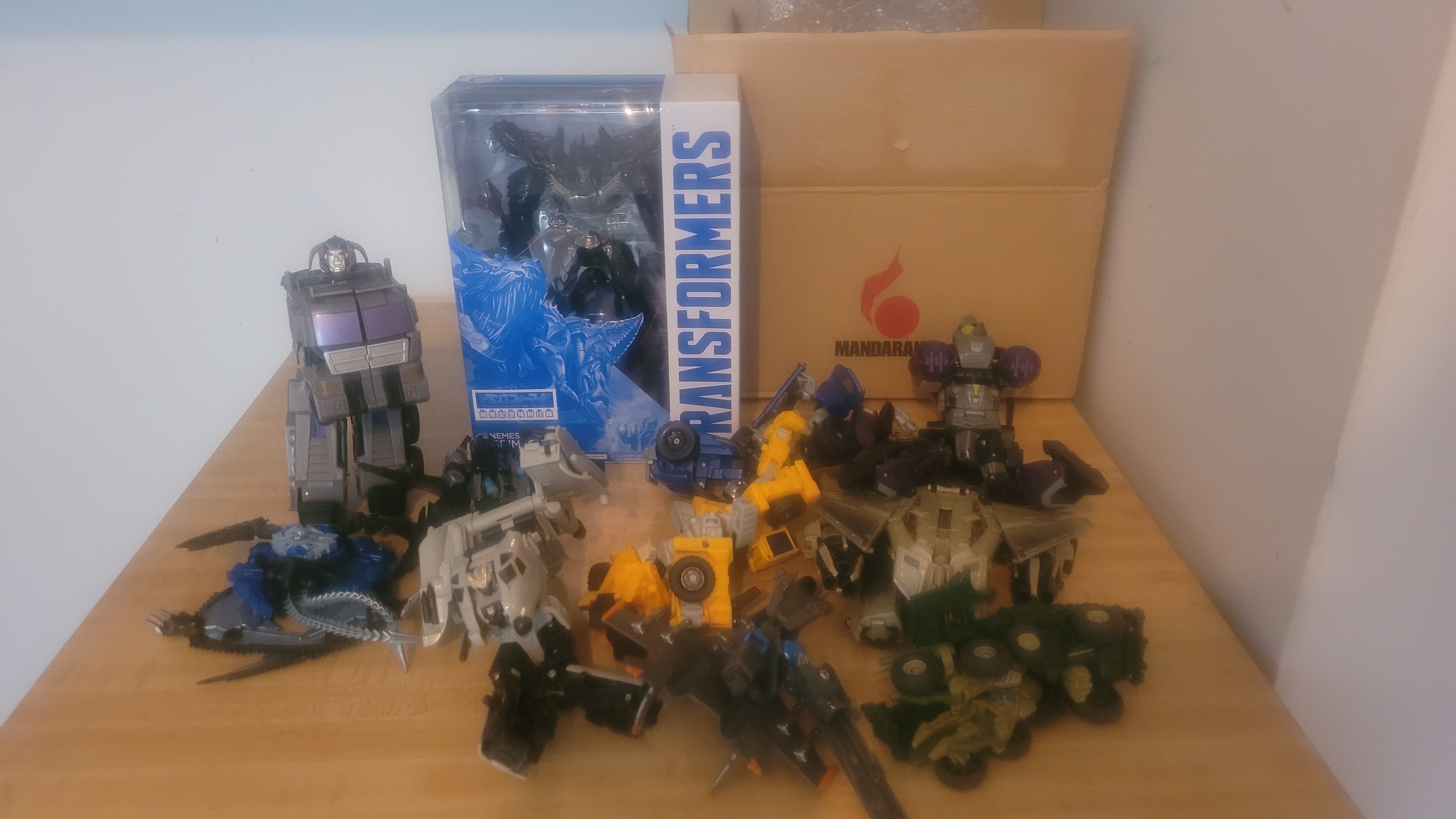 Me, I got the RID boxset of Sideways and Axer, a G2 Sideswipe (just missing the gun) a gunless G1 Sandstorm, a partly broken G1 Optimus (I have the parts to repair it), and two scraps to make customs with. Plus a thing that I'll ask WTF is it in the identification thread.