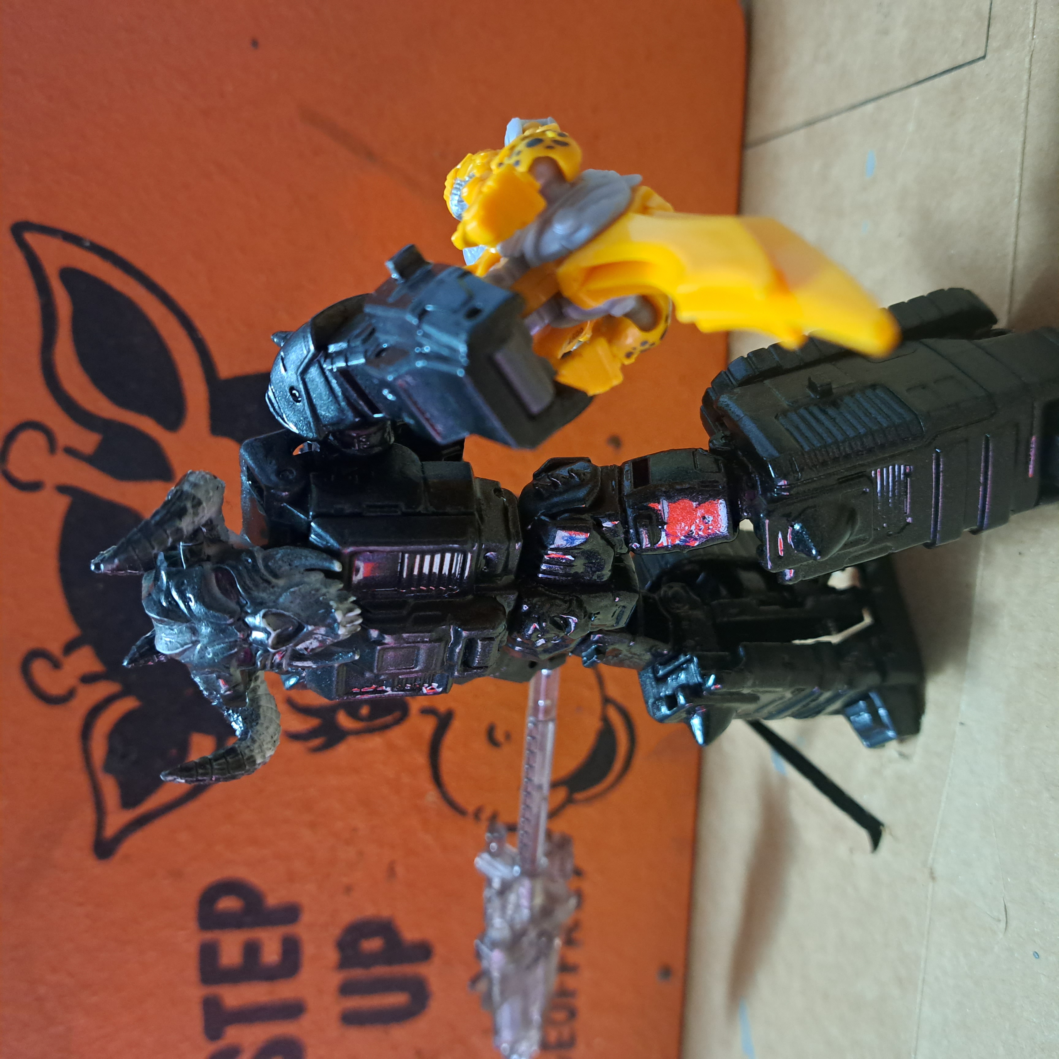 Hmmmmm...are you going to repaint him into Energon Six Shot, but leave a purple Death's-Head-Cylon on each shin?