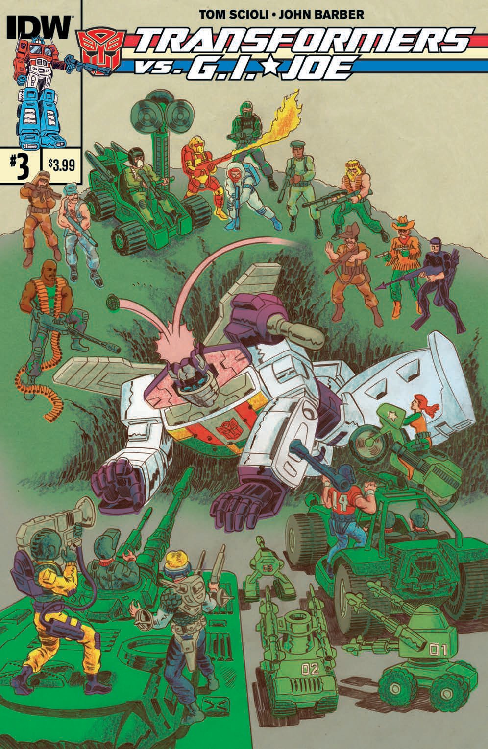 CYBERTRON INFESTED! The Transformers' homeworld is crawling with tiny green invaders from the planet Earth—the G.I. JOE team! Also this issue—Funeral for a Friend. Many AUTOBOTS and G.I. JOE soldiers have fallen in the line of duty—but you've never seen a send-off like this!