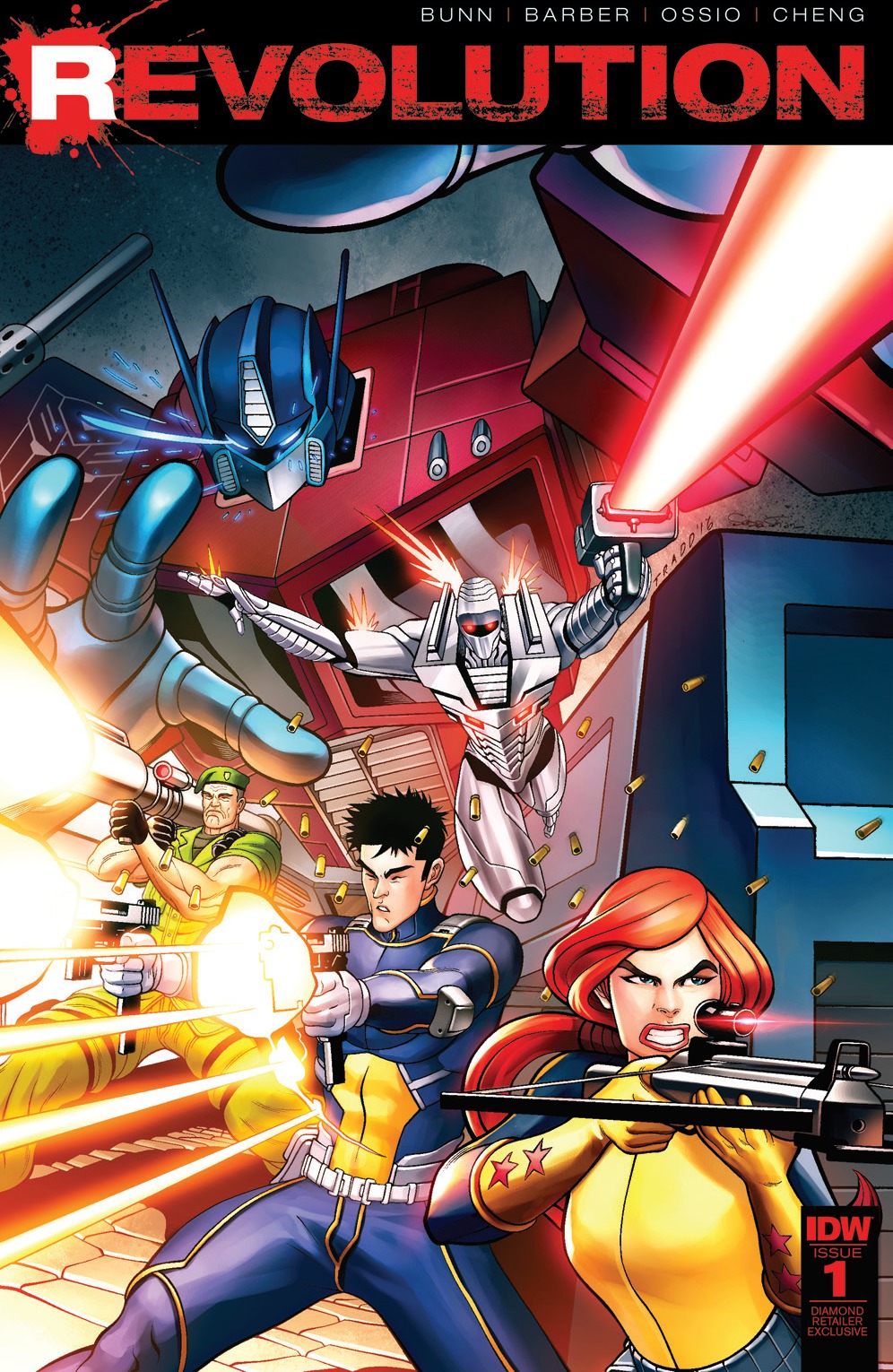 THE REVOLUTION BEGINS! Explosions rip across the Earth—and all signs of blame point to OPTIMUS PRIME and the TRANSFORMERS! G.I. JOE refuses to go quietly—and they assemble heroes big enough to stop the invaders! ACTION MAN and M.A.S.K. fight for humanity—but where do ROM and the MICRONAUTS stand? Celebrating more than a decade of stories by IDW and HASBRO, this unprecedented bi-weekly event draws everything together—and leaves nothing standing. The REVOLUTION is here—TAKE A STAND!