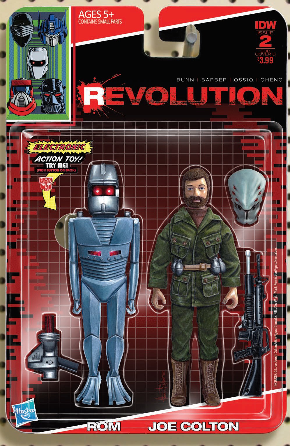 ROM—A MURDERER?! That's what OPTIMUS PRIME and the TRANSFORMERS think—and right or wrong, there's only one outcome: all-out war! Meanwhile, G.I. JOE turns to the one person who can save the world from ultimate destruction—MILES MAYHEM!