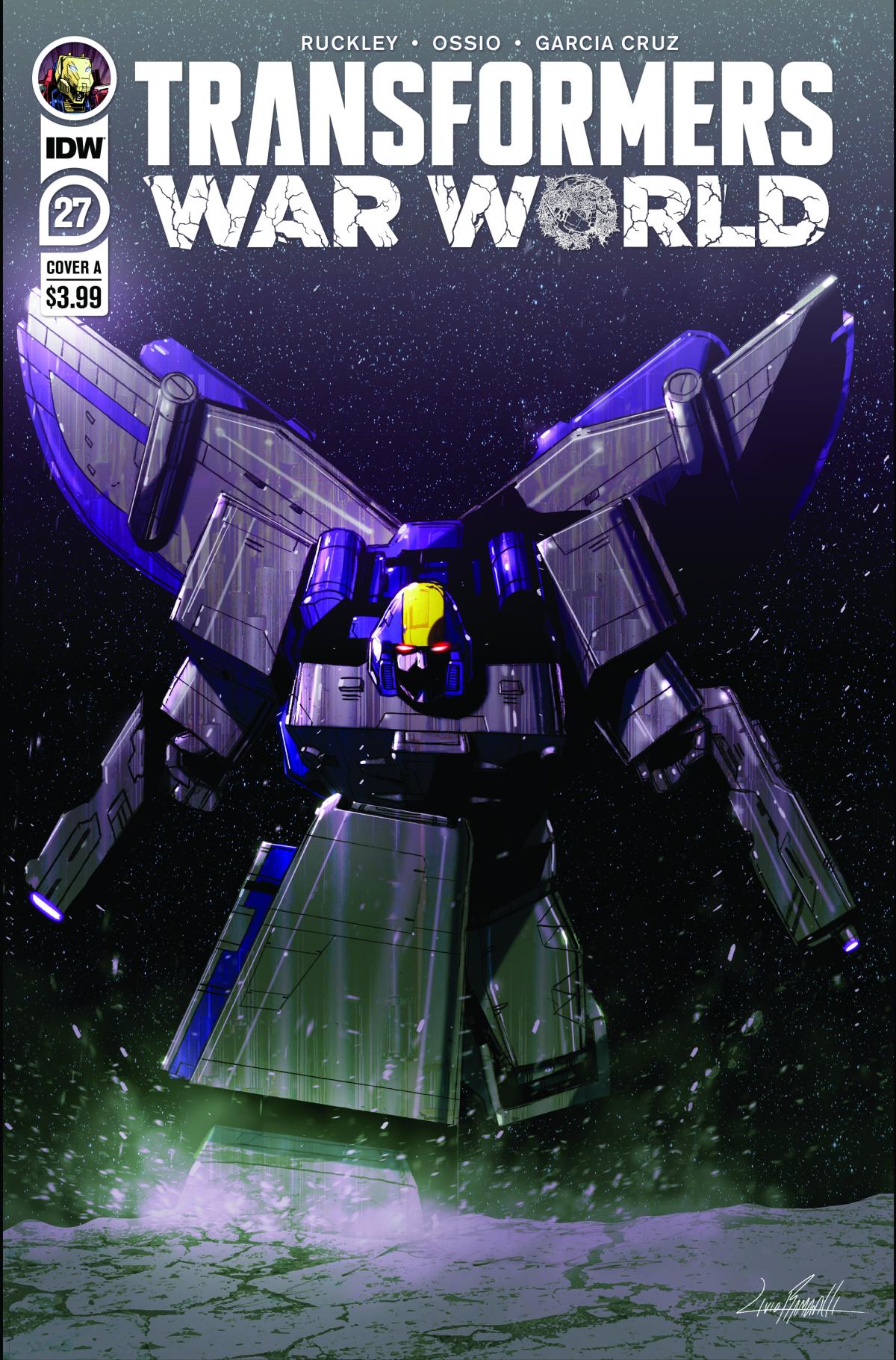 "War World: Moon". Cybertron's winged moon, untethered from the planet and adrift in space, is in peril-from its slow descent towards the solar system's star to new visitors who have their own plans for what to do with the moon. Can the remaining scientists and engineers hold their own until back-up arrives from Cybertron?