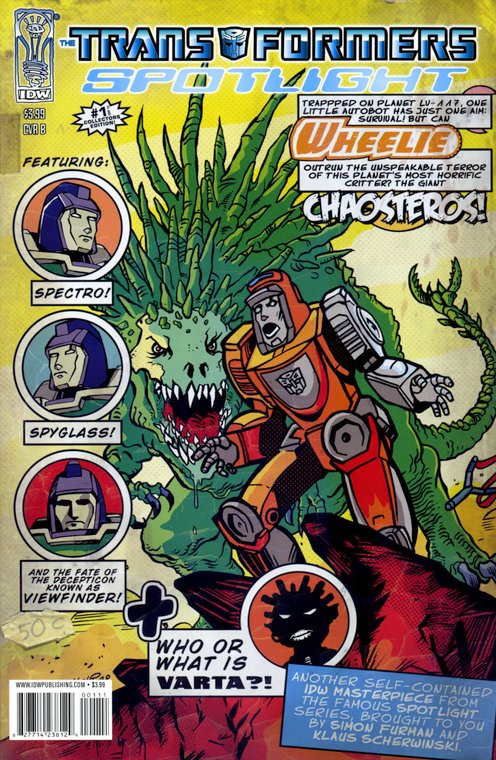 A second Transformers Spotlight this month finally showcases one of the most underrated of all TRANSFORMERS, the Autobot Wheelie! Cover artist Klaus Scherwinski teams up with TRANSFORMERS über-scribe Simon Furman to introduce Wheelie to the IDW generation of readers. Trapped, alone on a hostile, faraway planet, the diminutive Autobot must dig deeper than ever before just to survive, running a gauntlet of pain and self-sacrifice that leads, ultimately, to a choice that will test not just his allegiance, but his very soul! Featuring two special covers from Scherwinski.