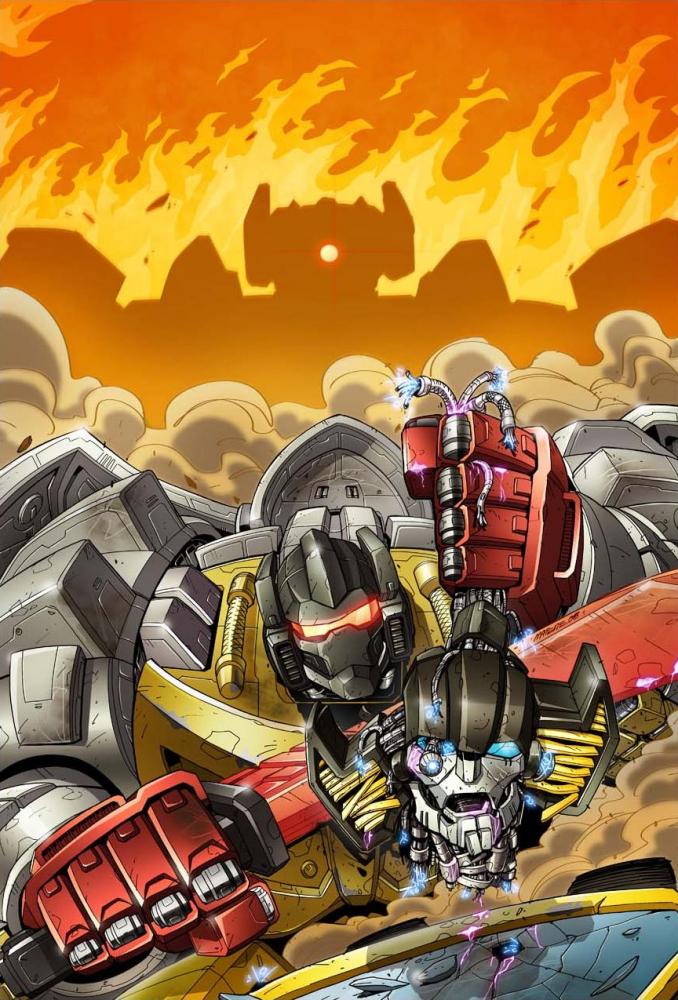 In whatâ??s left of Fallon, Nevada, the warring DINOBOTS call an uneasy truce (though GRIMLOCK still has some tough questions to answer)â?¦ just in time for SCORPONOKâ??s Headmaster legions to strike! Itâ??s all part of a grand plan many years in the making, as HOT ROD is now only too painfully aware. Also, enter: SUNSTREAKER!