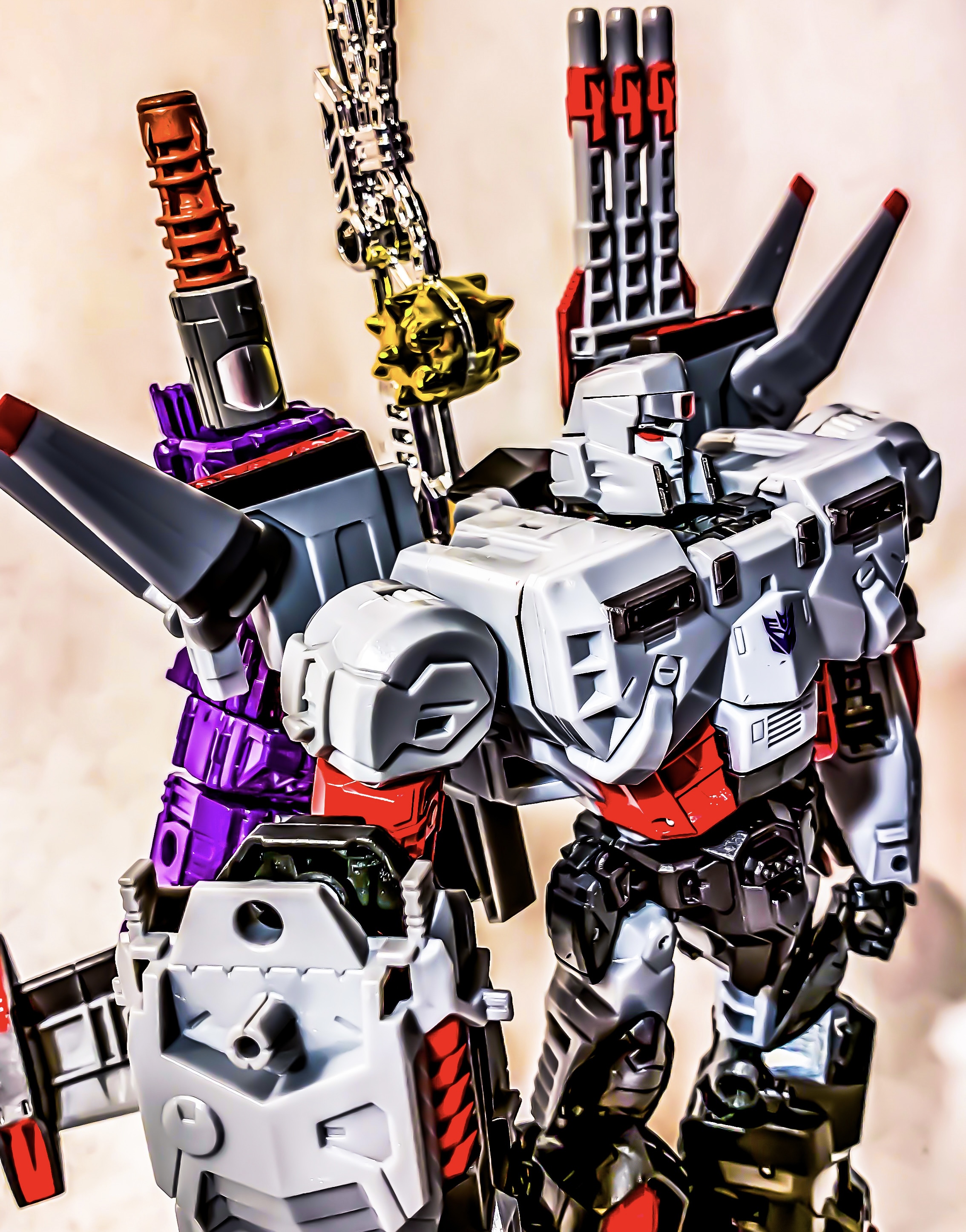 I have seen some pics comparing him to Mastermind Creations’ Tyrantron — I can see the similarities, and if I had all the monies and free shelf space, I’d add him to the collection too! Tyrantron is like an MP, and his price reflects that — but he’s still cheaper than the average Takara MP.