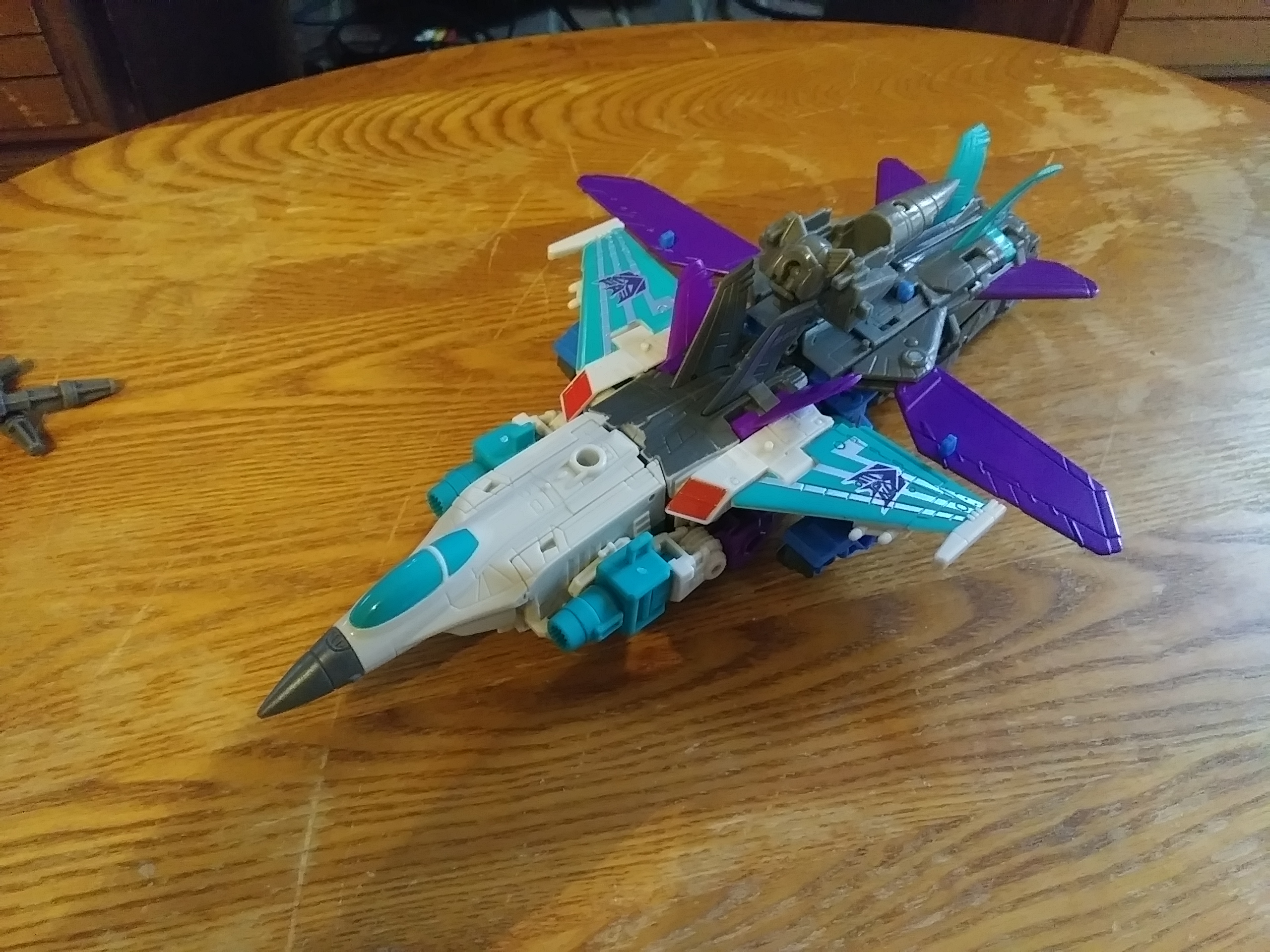 And it looks much better in super-jet mode than Fix 1. Blackwing's arms just barely peek out from under Dreadwind's wings, and they look fairly natural there, like some sort of wing-mounted weapon or something.