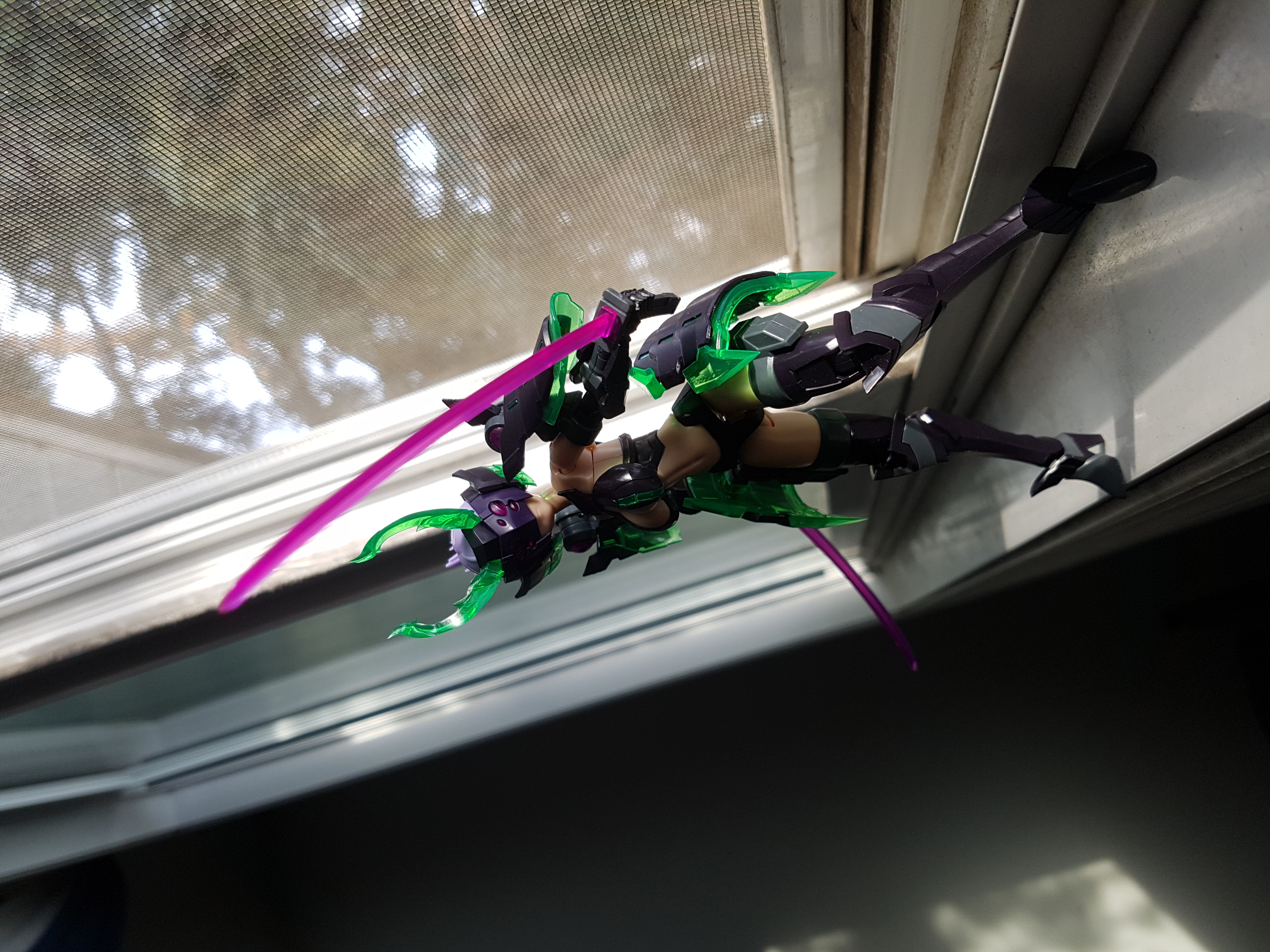 Shots from my window this morning! Couldn't fit her giant robot spider legs up there too and with the intermittent sunlight due to clouds I didn't want to fiddle with them for too long.