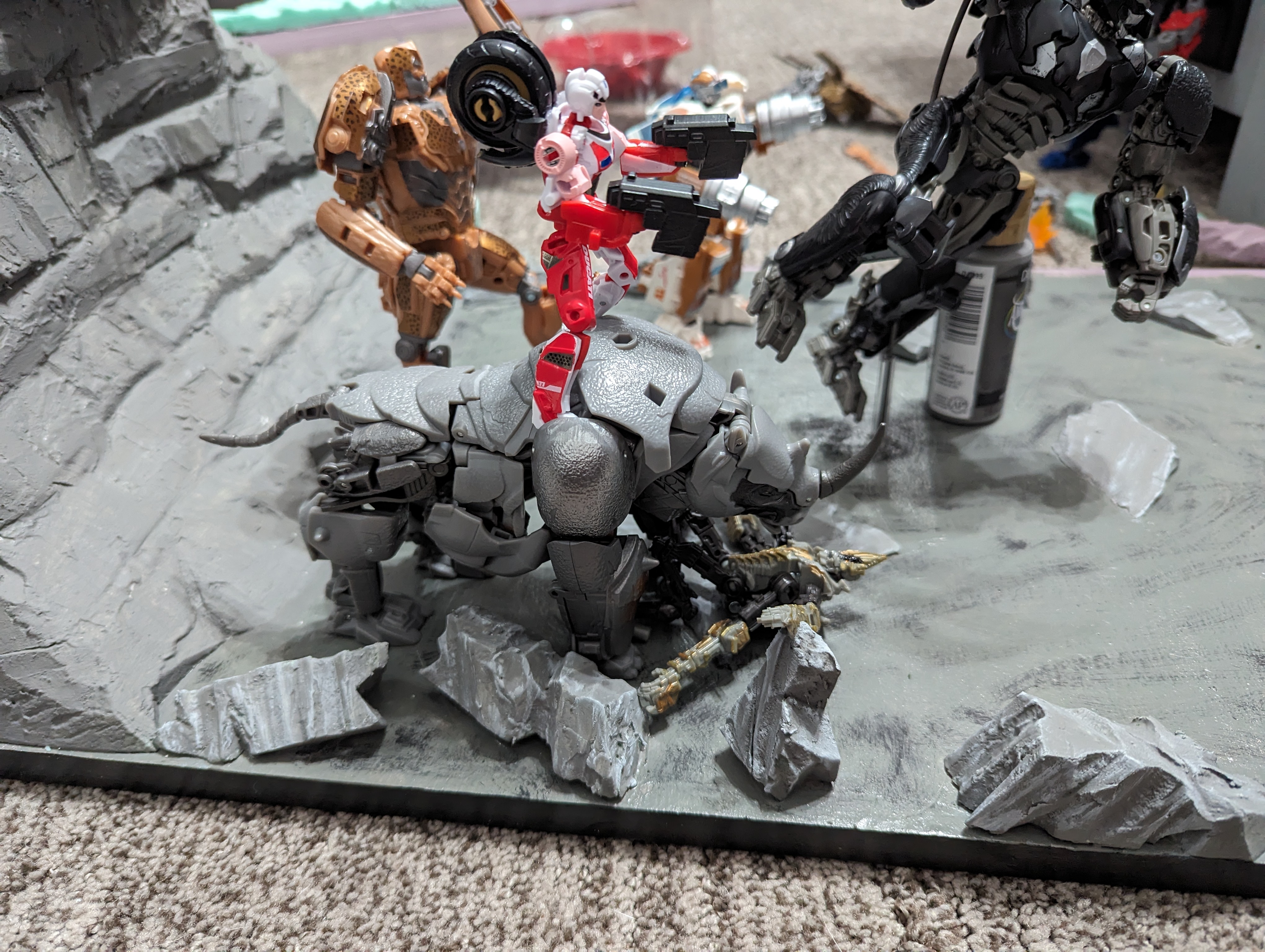 @ Rodimus Prime, i am fortunate to be fully retired (military) which allows me to be home and do whatever. So on this particular scene, i think i worked like up to five hours a day for almost two weeks. So maybe between 45 and 50 hours, could be more though. I dont recall if i messed with it on the weekends but during the week i was just like going at it on this.. Honestly, i think that burned me out somewhat.. A couple of weeks later i got back into the groove and did some more work on it.. Like i said, with the weather change and doing outside DIY and inside stuff, it got put on the back burner.. Id say i have plenty of hours left on it, maybe not so as before.