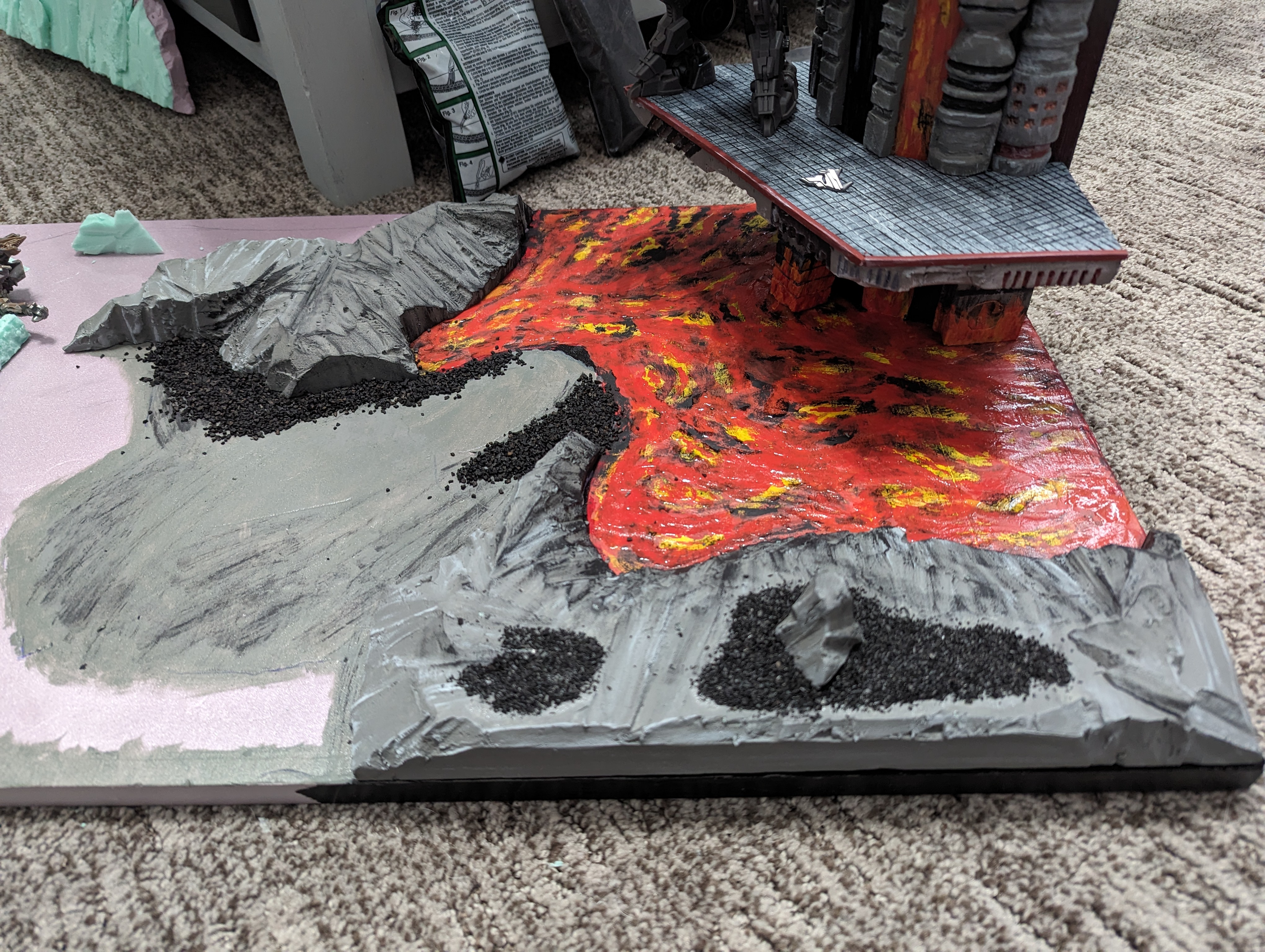 I have some updated photos of my ROTB diorama. I have been focusing on the right side area. I have the center piece, platform, lava area and two of the rock sections completed at this point. I will be adding a couple more things to the platform once i get the bridge piece in but otherwise it’s pretty much set.
