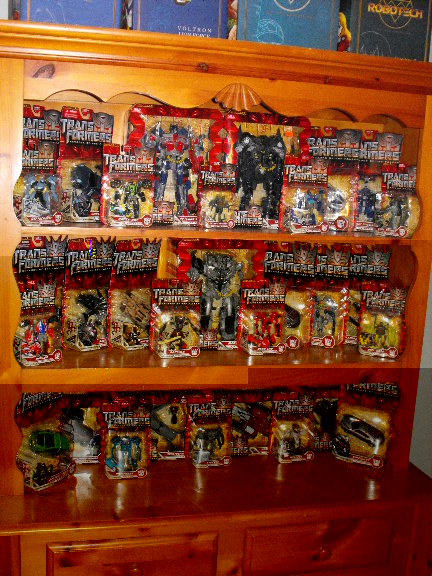 I have finally put together a collection that I am proud to show off. I used to have a collection growing up, but alas, due to a lack of good judgement at the time, sold it off. That collection was good, but all toys were opened for the most part. Now, 15 years later, I have a collection comprised of only MISB transformers. Unfortunately, there are no original G1 toys for they are just a little out of my budget. However, I have been able to get some nice pieces to many of the transformer lines. This collection consists of: Beast Wars, Machine Wars, Beast Machines, Robots in Disguise, 2007 Movie, ROTF movie, 25th Anniversary, Armada, Energon, Universe, Cybertron, Beast Wars 10th anniversary, Commemorative Series, some G1 knock-offs (I know, but they were some of favorite ones from before), Animated (only the dinobots), Alternators, and the RID Classics.