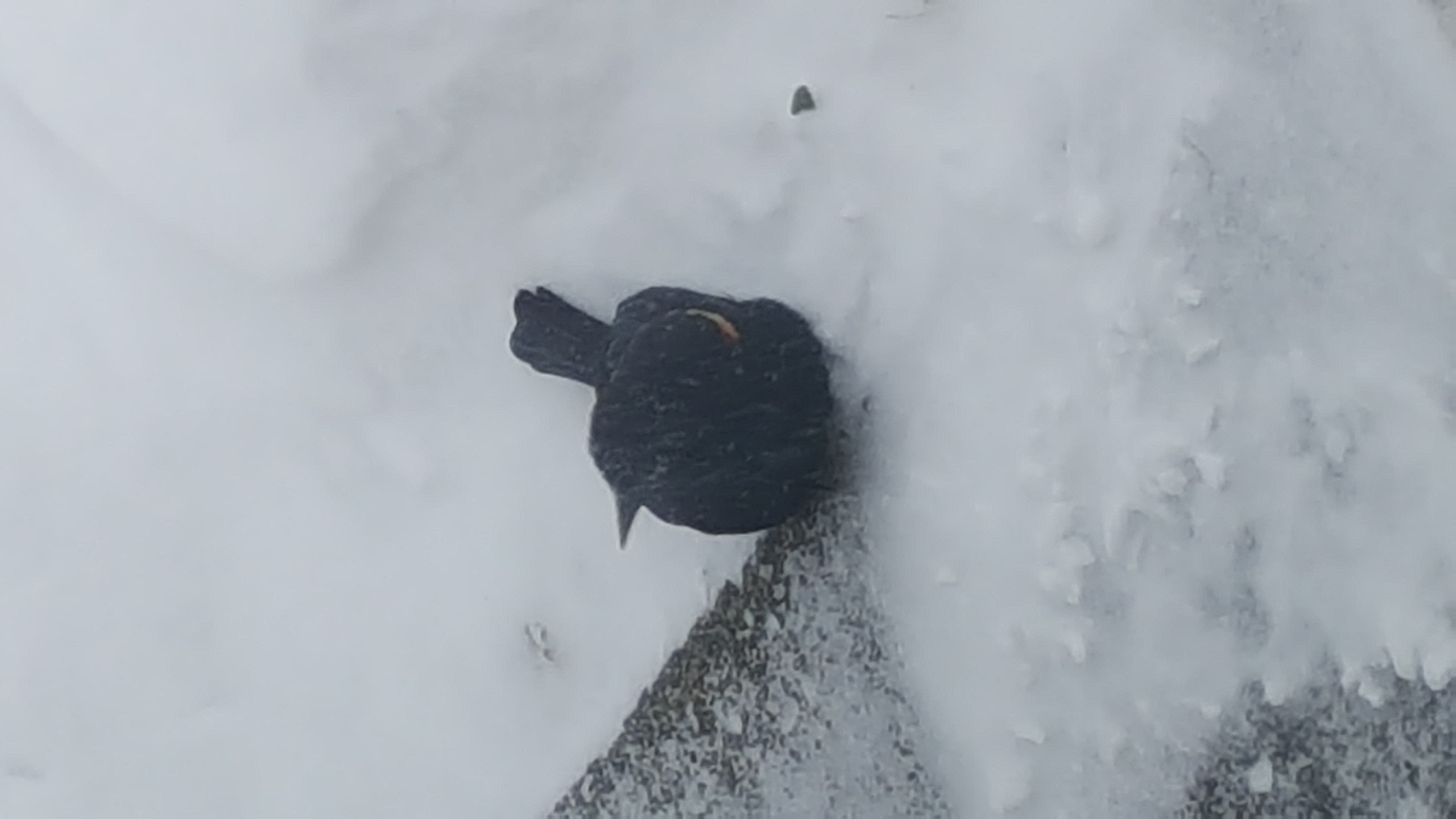 I would say it's a male Redwing Blacbird - most likely an immature. (meaning almost an adult) https://www.allaboutbirds.org/guide/Red ... ackbird/id