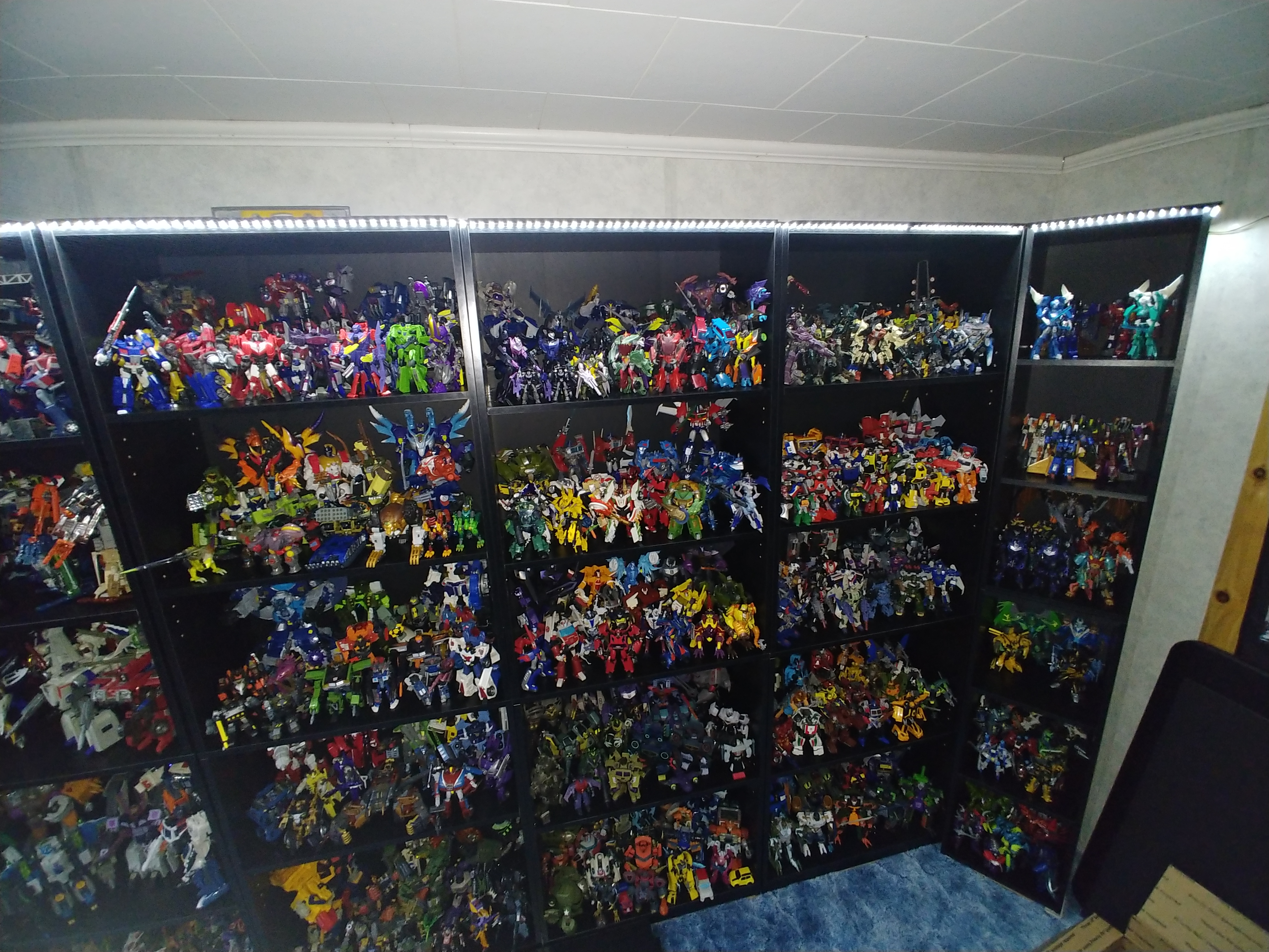 No pics right this second but wanted to get the thread started. Finally found the right size bookcase to finish up my one corner and I think I found an answer to my lighting concern with some LED light strips (I'll Find that out when I get back home next week). I was gonna just post my Beast Wars collection pics here in the meantime but didnt feel right posting them twice being I posted them HERE in the Beast Wars Appreciation thread and I have changed out the bookcases to black ones and set them up different. So I should have some updated pics here soon.