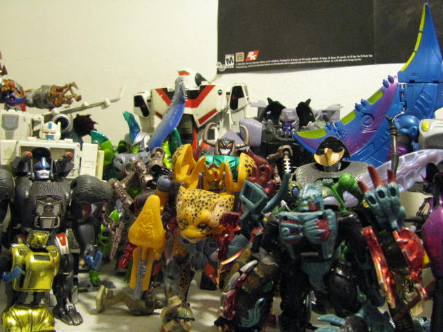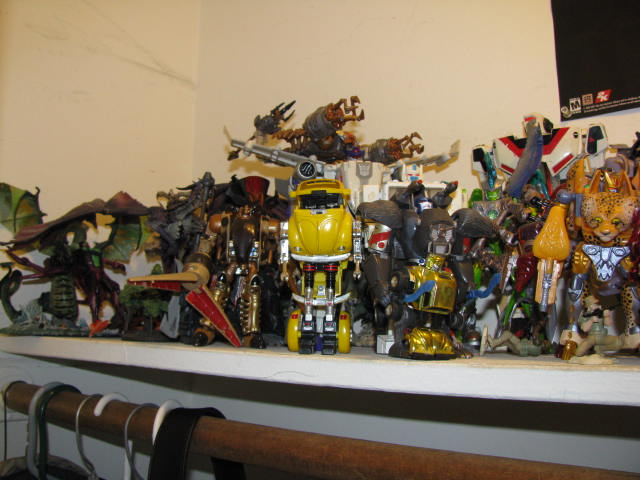 While it isn't a supremely large and/or impressive collection. It does happen to house some of my favorites like G1 ultra magnus and my gold G2 bumblebee. I also quite like the renegade GoBot Bugbite. Yay for transformers!