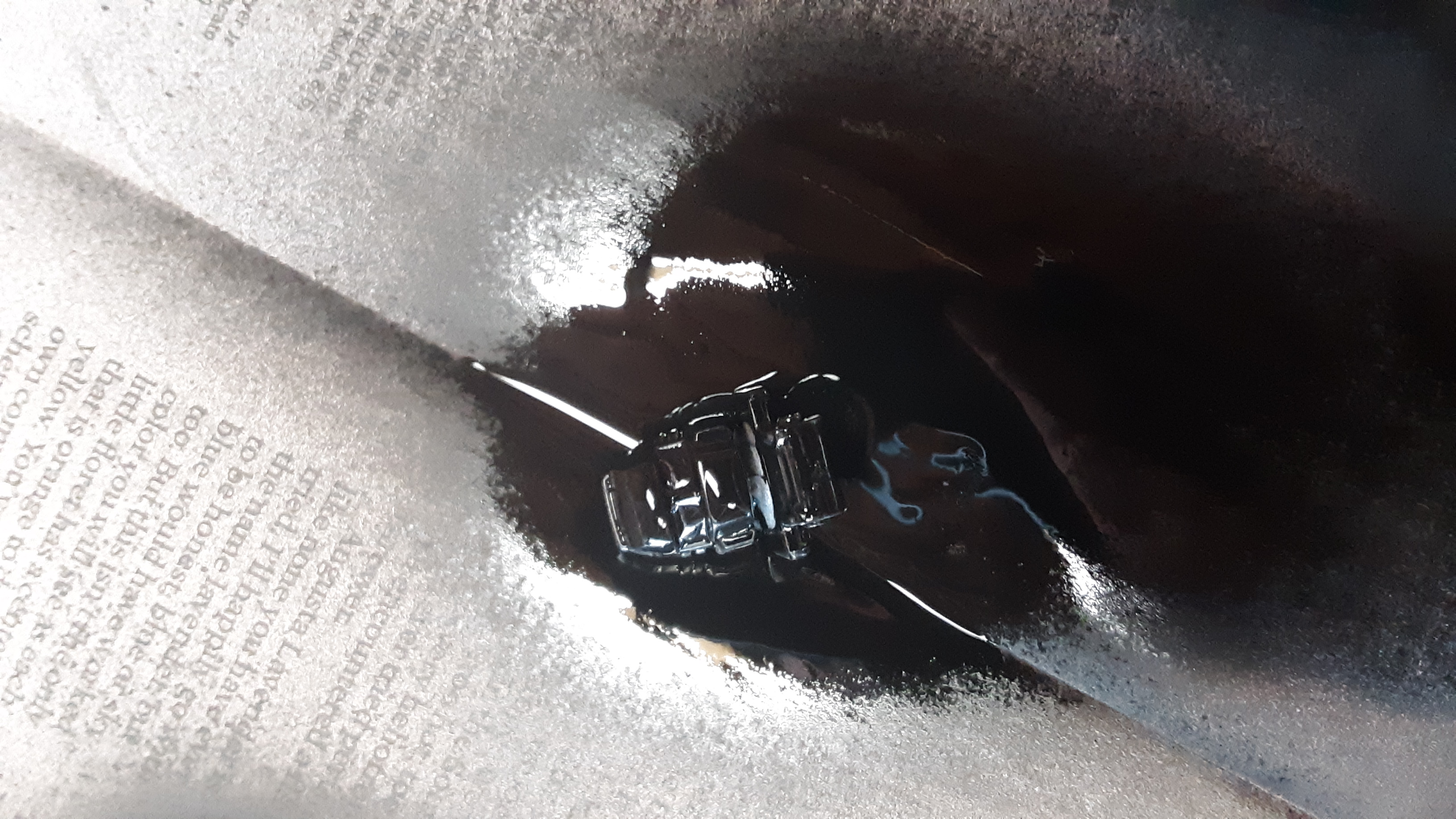 After bewildering myself at the sight of a totally unpainted piece of Transformer toy, I painted the roof and rear end of the outside, then painted the underside of the windows red so that they would still appear translucent but with Runabout's distinct colour scheme.