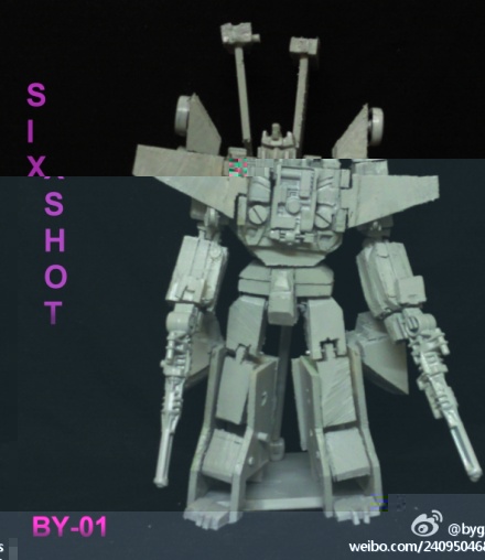 Another third-party Sixshot prototype has surfaced on HK-TF. The producer is unknown at this point, but the figure is labeled BY-01. Images of the prototype in robot mode have been mirrored below. What do you think about the latest character to get to third-party "double dip"? Sound off here.
