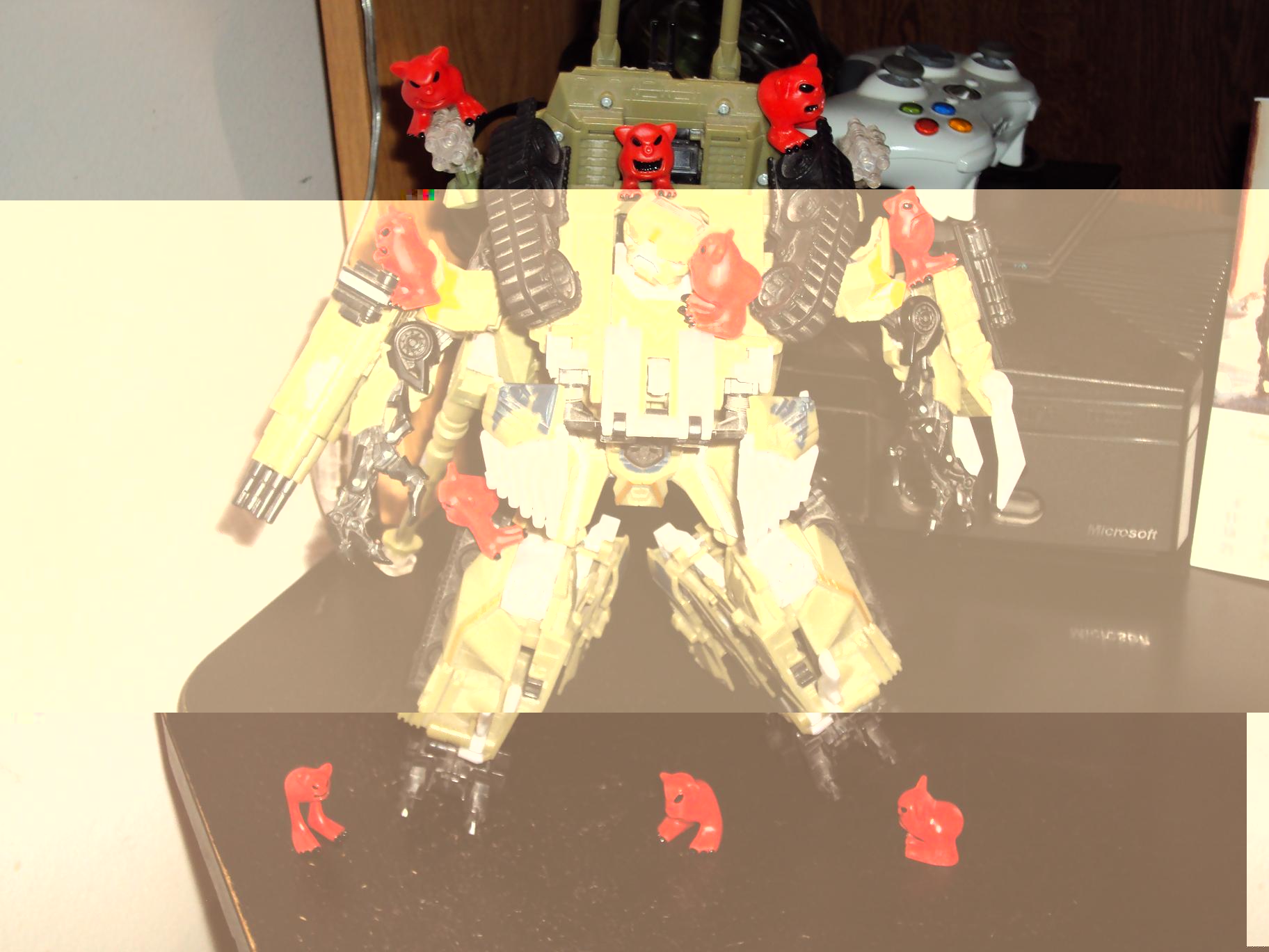 Just got these guys in the mail, Mordles! They decided to pester some of my Transformers. Brawl was confused, Ripclaw was hungry.