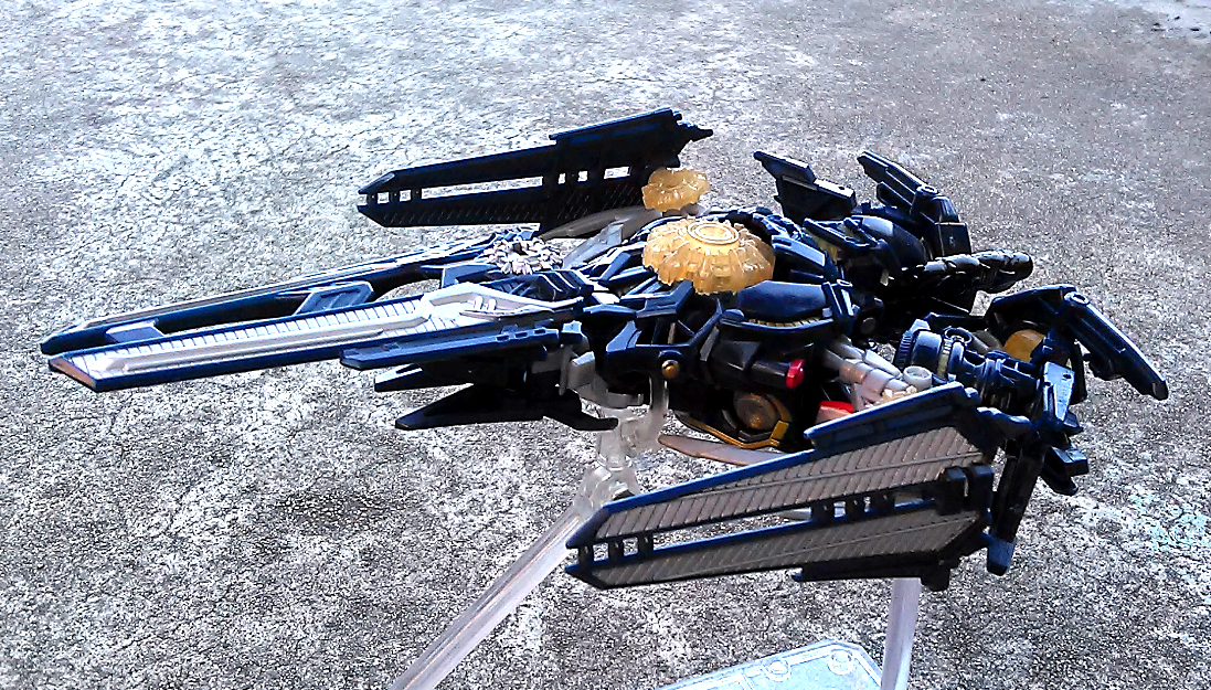 A recent acquisition of mine. She couldn't stand because her knees and hips were too loose, her head didn't swivel, and the left wing rotor wouldn't spin with the gimmick. So I performed surgery. She was actually quite simple to take apart and put back together. I cut and sanded down the collar, took the bits of the collar I cut off and wedged them into the slot for the mushroom peg that holds her head on so it wasn't so loose anymore, loosened the rotor with a bit of gentle prying, and applied floor polish to her hips and knees. Turns out that fixing her up makes me appreciate this figure more. I mean, it's a shame she needs so much fixing to begin with, but in the end I don't regret buying her.