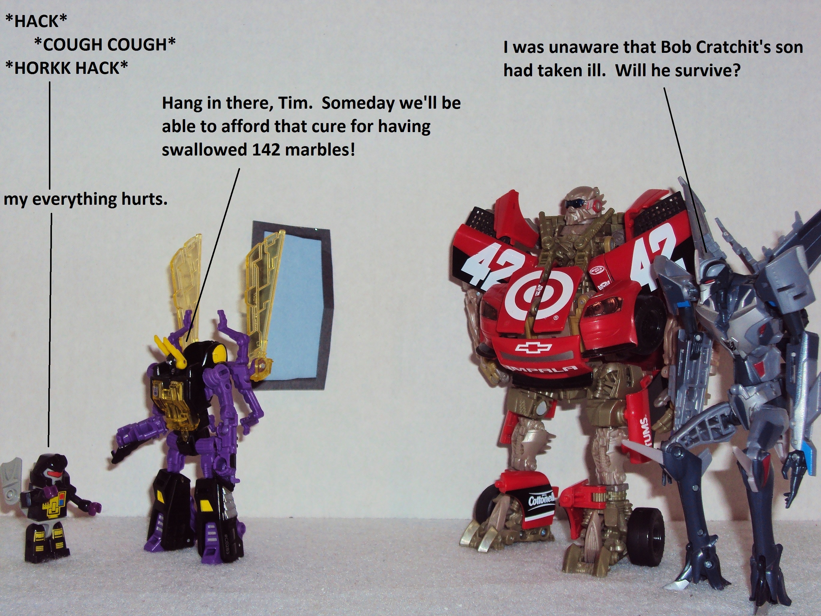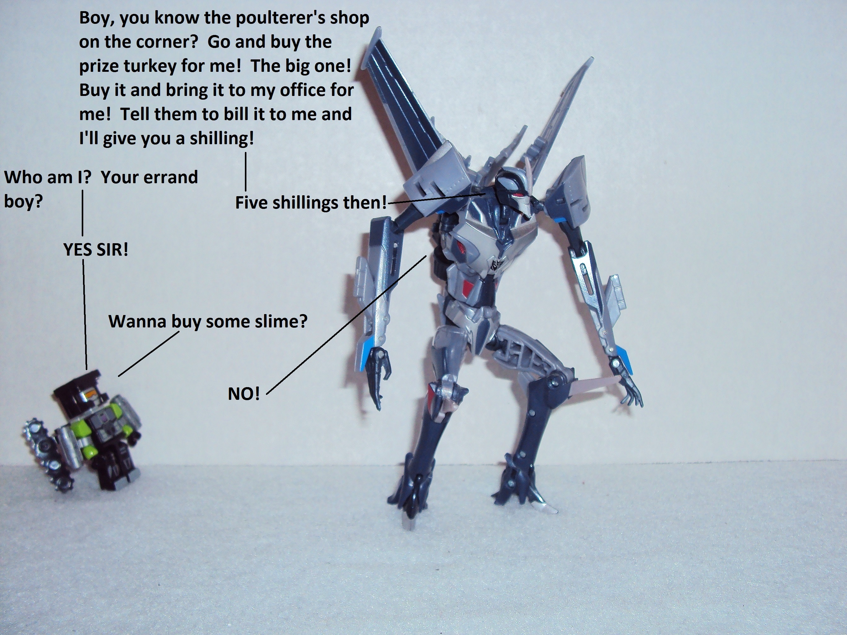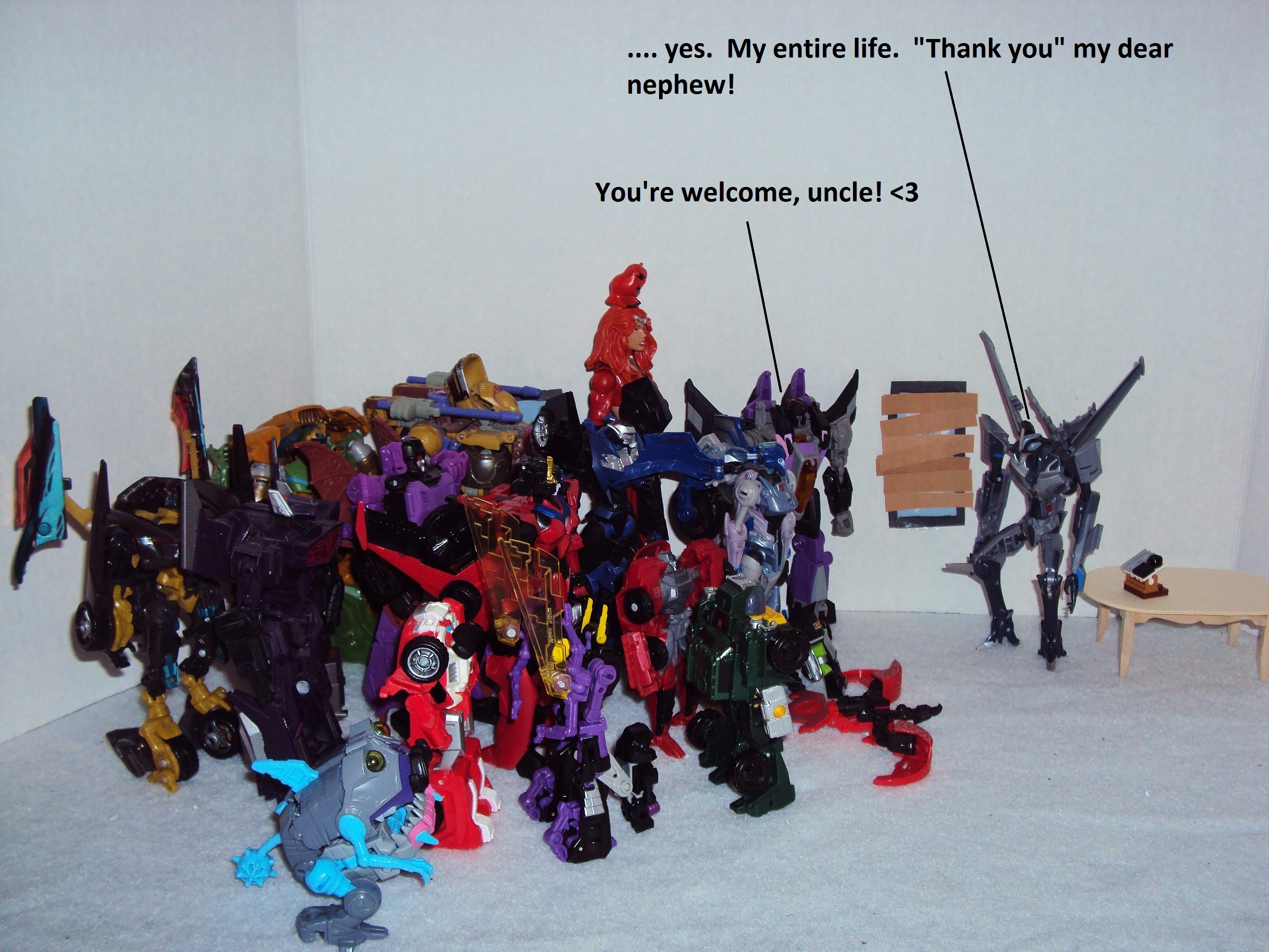 Swindle's trying to get friendly with the bionicle side of the collection!