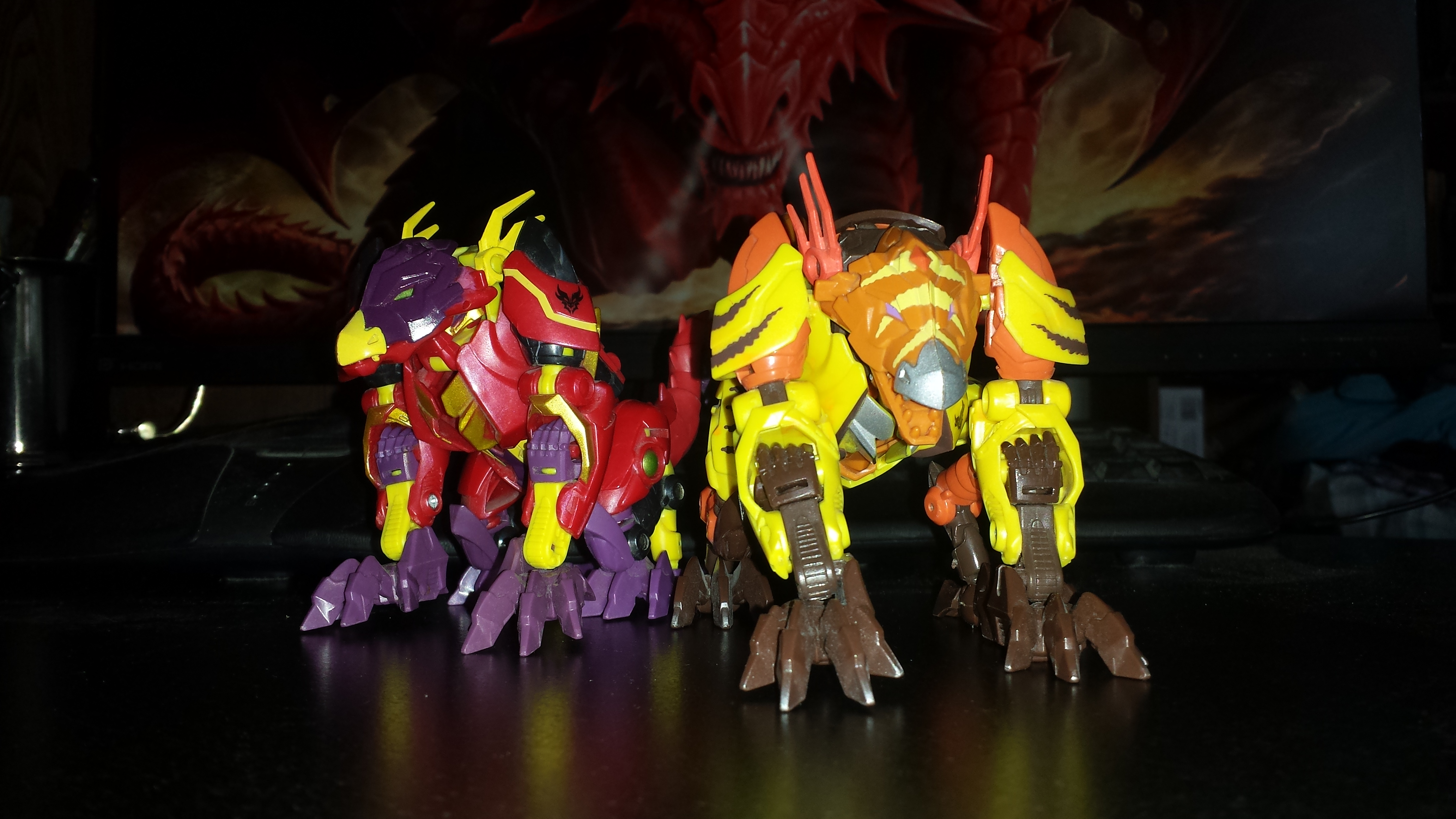 I love those Dragon Predacons, have all standard ones except for Ripclaw (her wave was skipped in Europe.) and I did get Vertebreak over Lazerback, I liked the colors more, plus he fit my headcanon "elemental" motif more (Ripclaw for Fire, Skystalker for Water/Ice, Grimwing for Wind/Thunder and Vertebreak for Earth). Another headcanon involves Predaking's 2-pack version with the prototype insignia, especially once I get the Dragon Fire one.