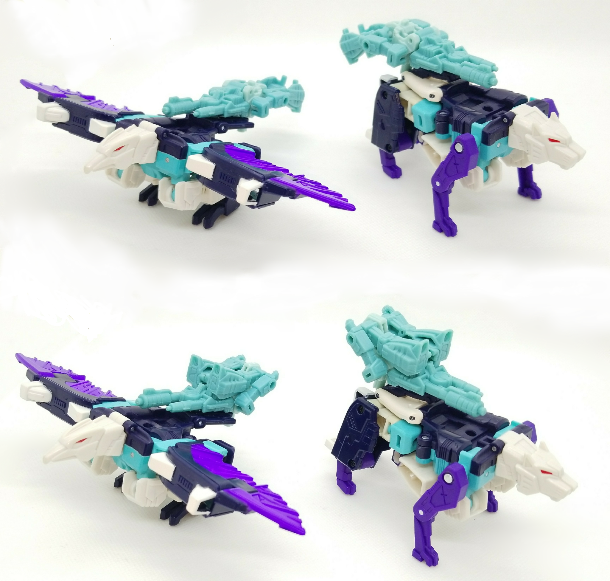 I didn't like the blue Targetmasters that came with Hotlink. Even through they could compliment his colour-scheme (in an 80's, "sythwave" styled way), there weren't any light blue details anywhere on him. So, I decided to donate the twin Targetmasters to the Wingspan and Pounce (for obvious reasons) and hm gave Hotlink to clones of Caliburst instead.