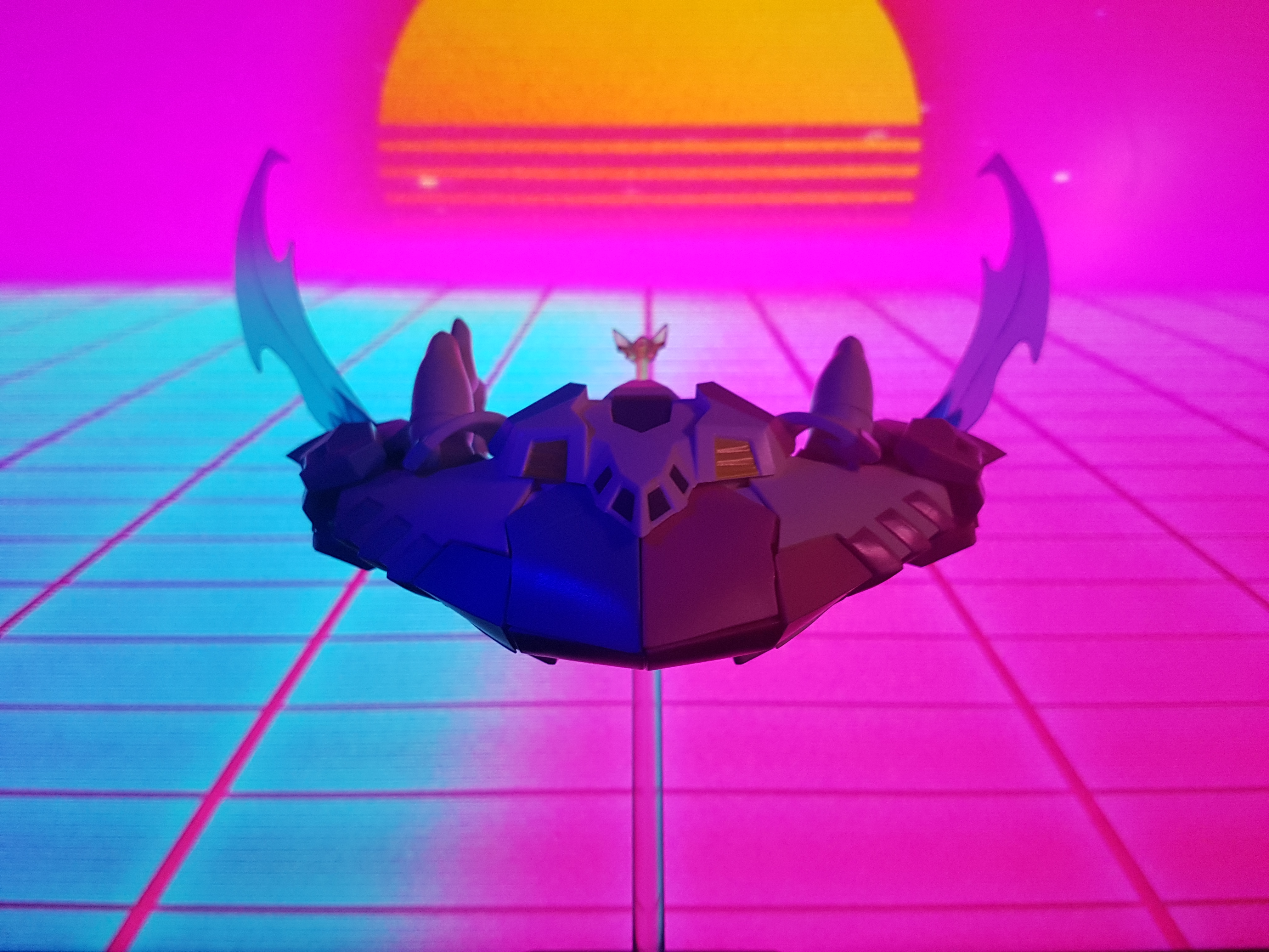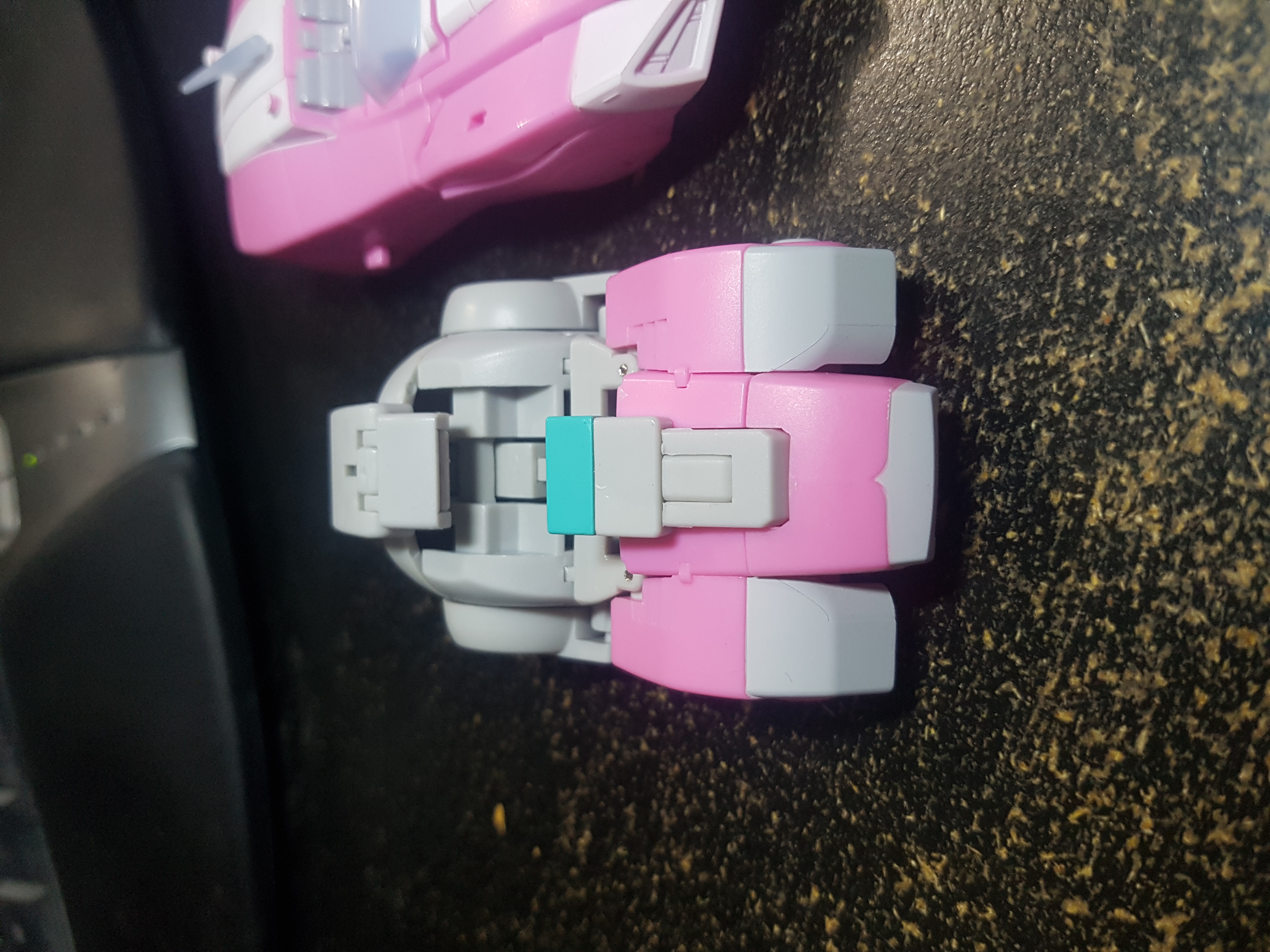 A pink and light blue stealth bomber. Gemini Wings Pink and Blue combine into the girliest flying death machine I've ever seen! Also part of the bomber mode becomes a stage, microphone, and speakers so I guess they're a band.