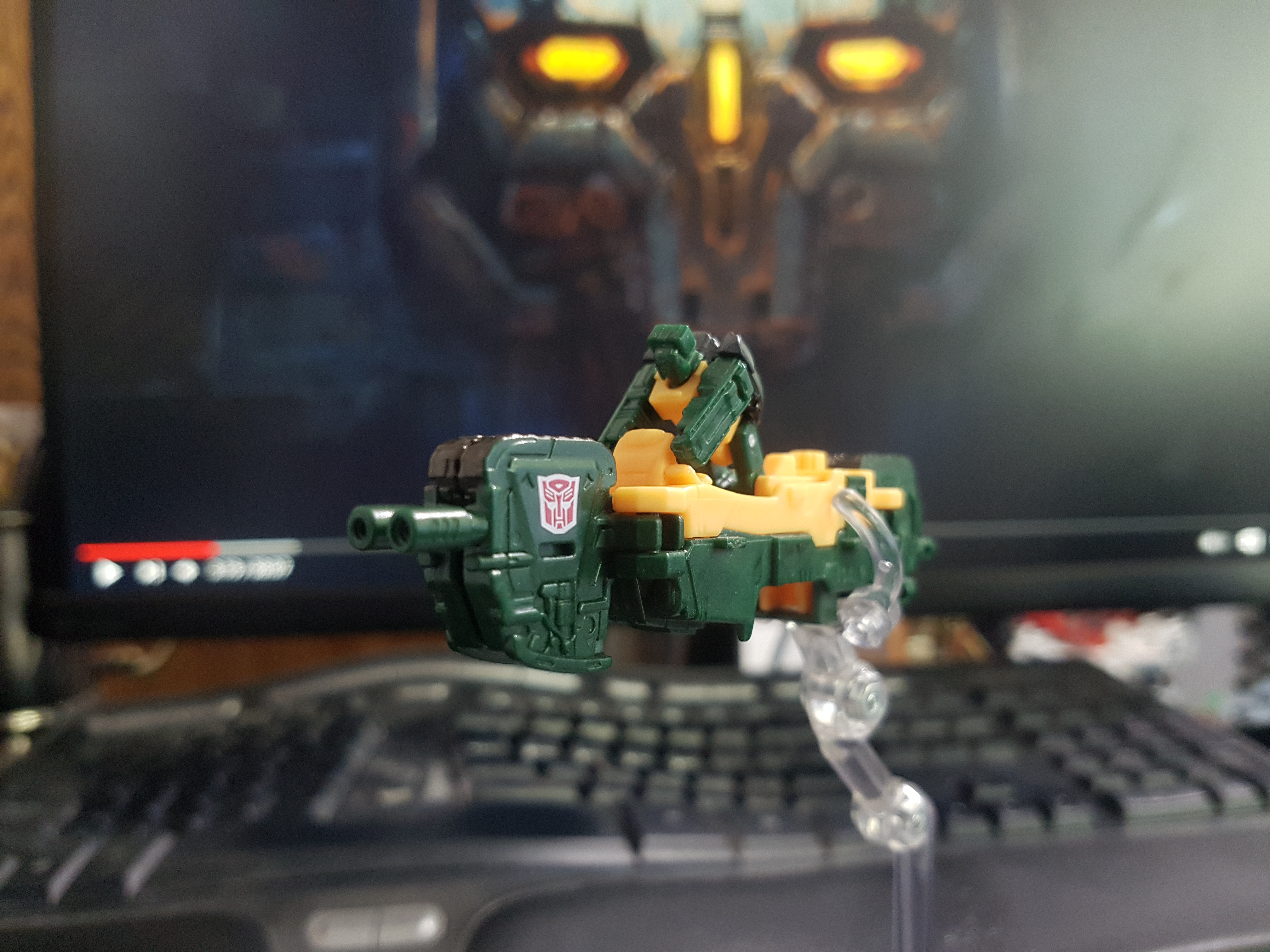 My first thought was that he was Animorphing into the tiny hotrod XD Love it.