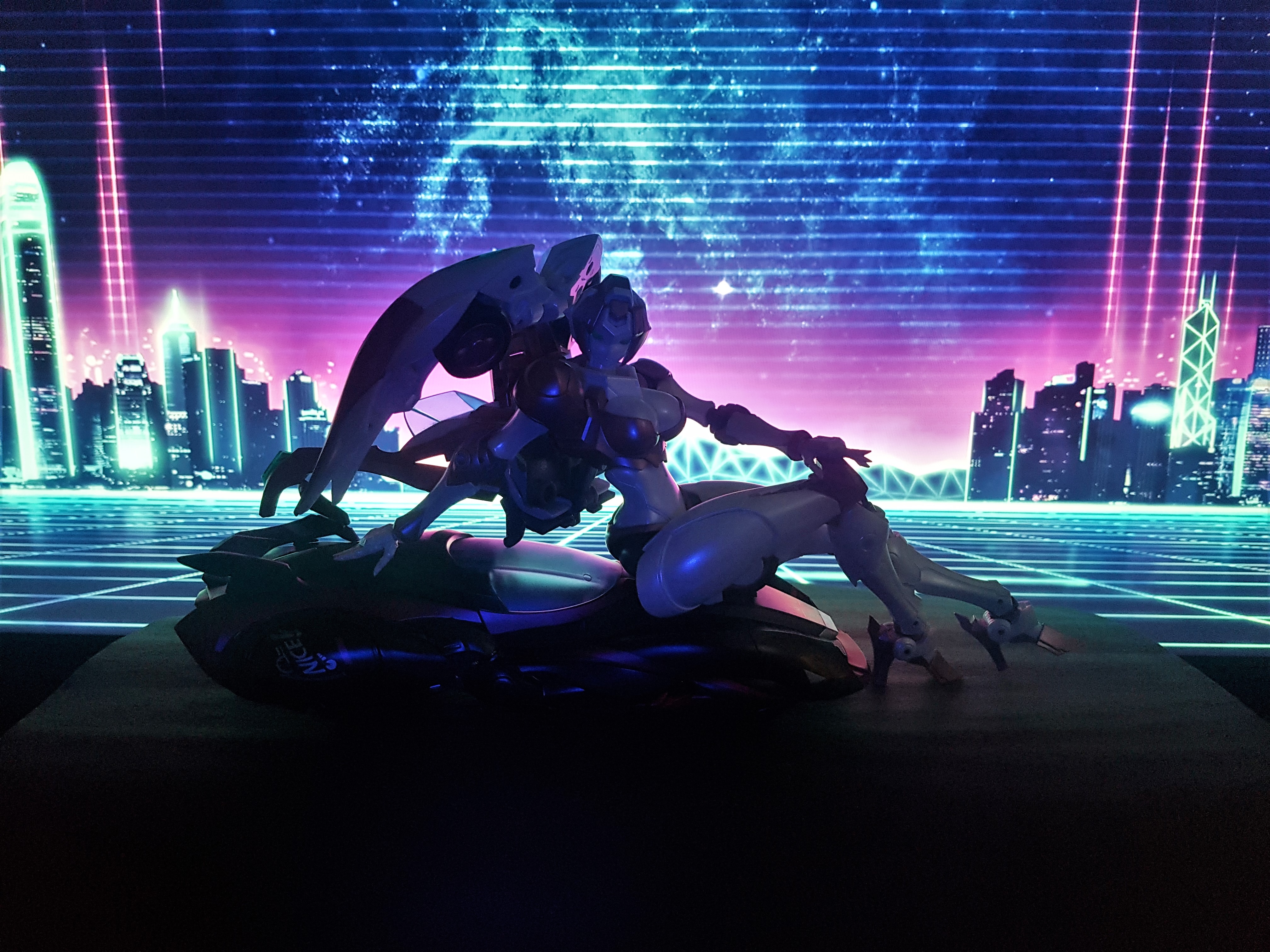 Similar shots as yesterday, except with Mocha in robot mode and Nicee in vehicle mode. And with a more gothic background.