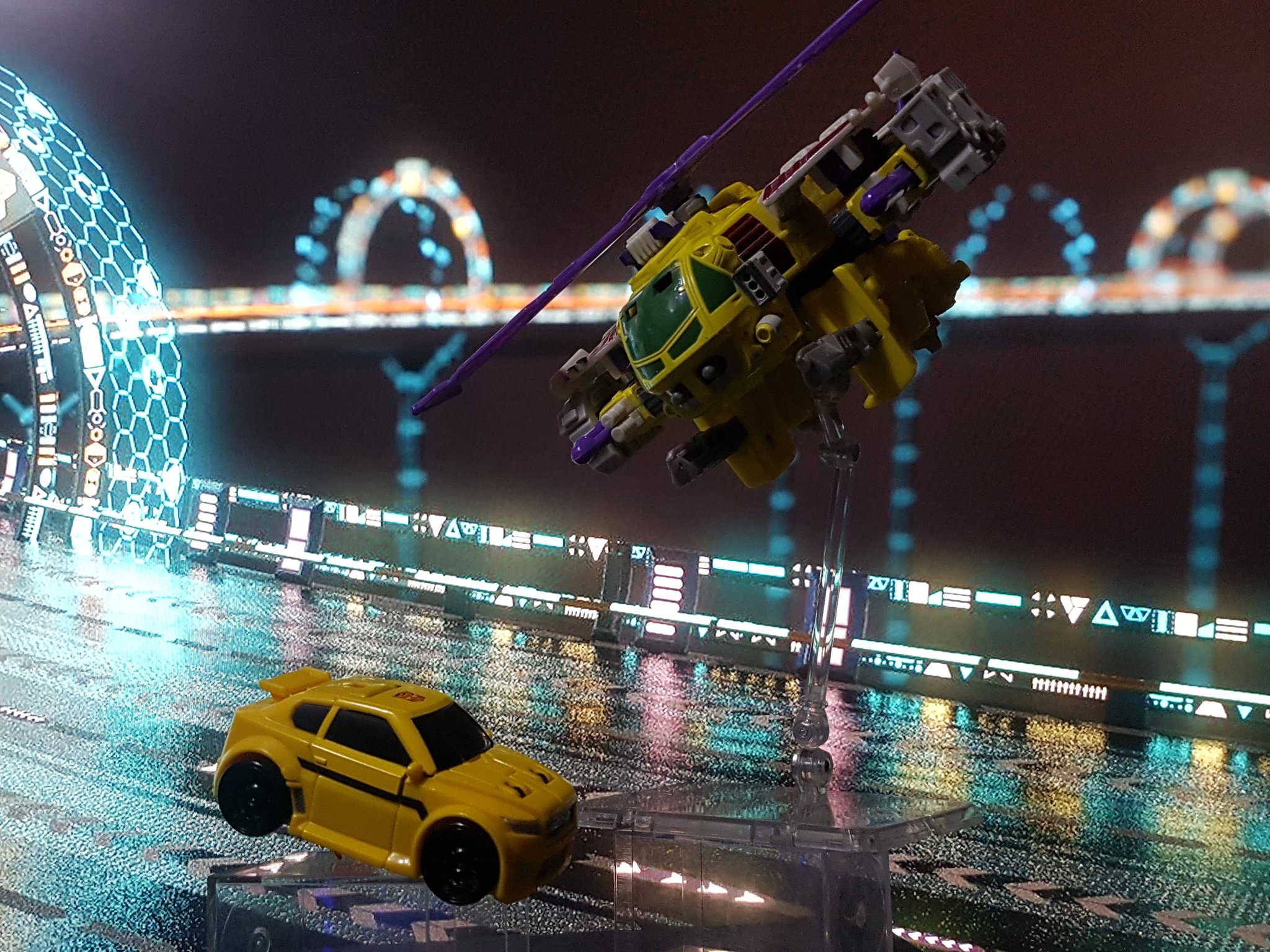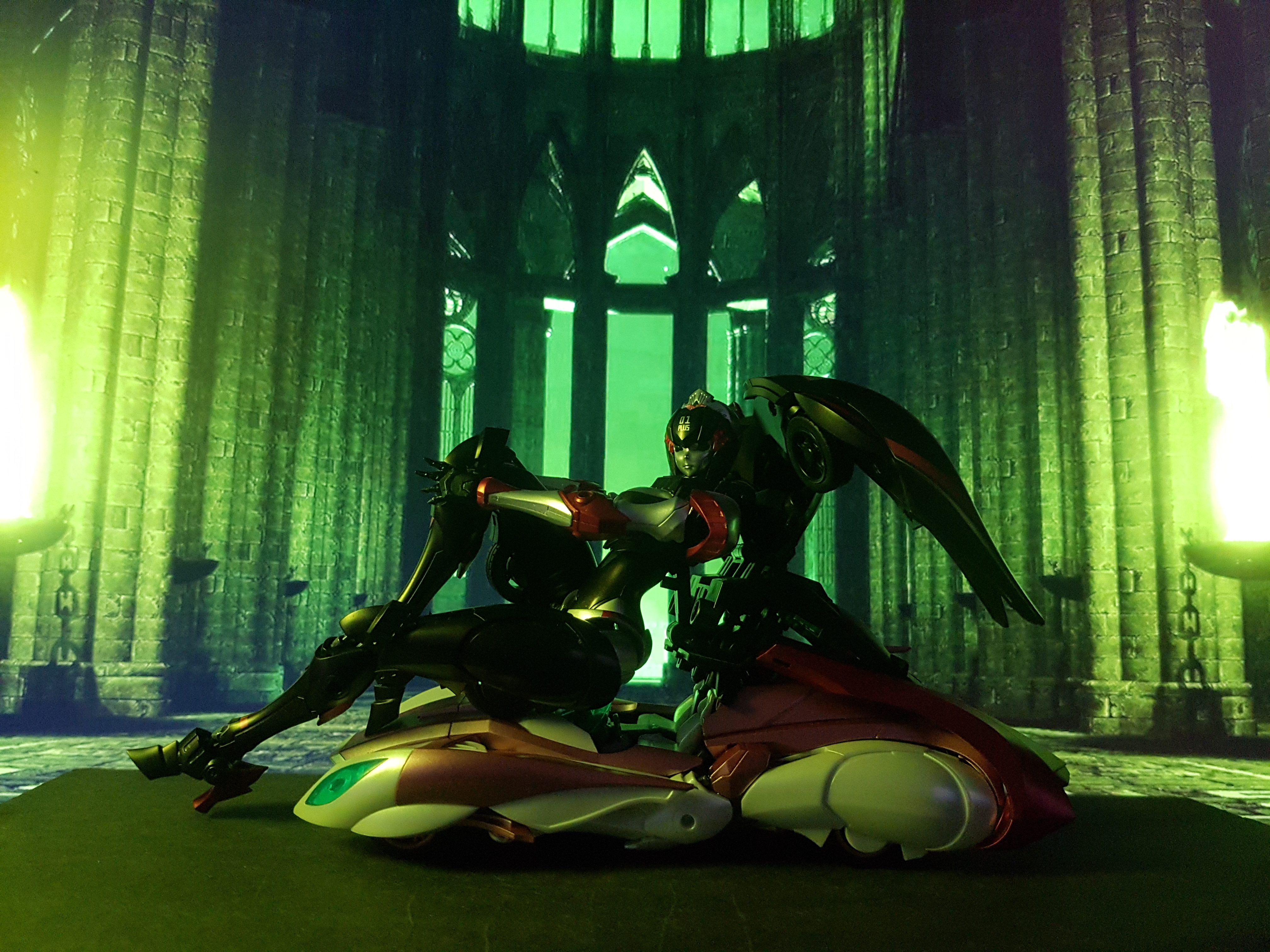 Similar shots as yesterday, except with Mocha in robot mode and Nicee in vehicle mode. And with a more gothic background.