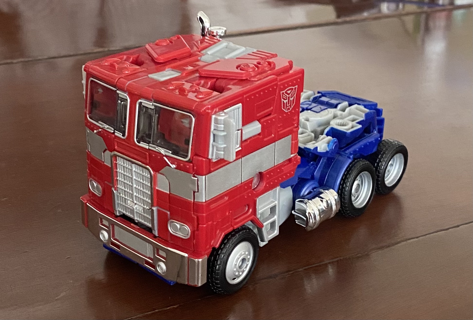There is something about this truck mode I just find so appealing. The back is bit untidy, with the feet just hanging out there, but the rest of the truck is so nice. The red is so rich and shiny, and the chrome…