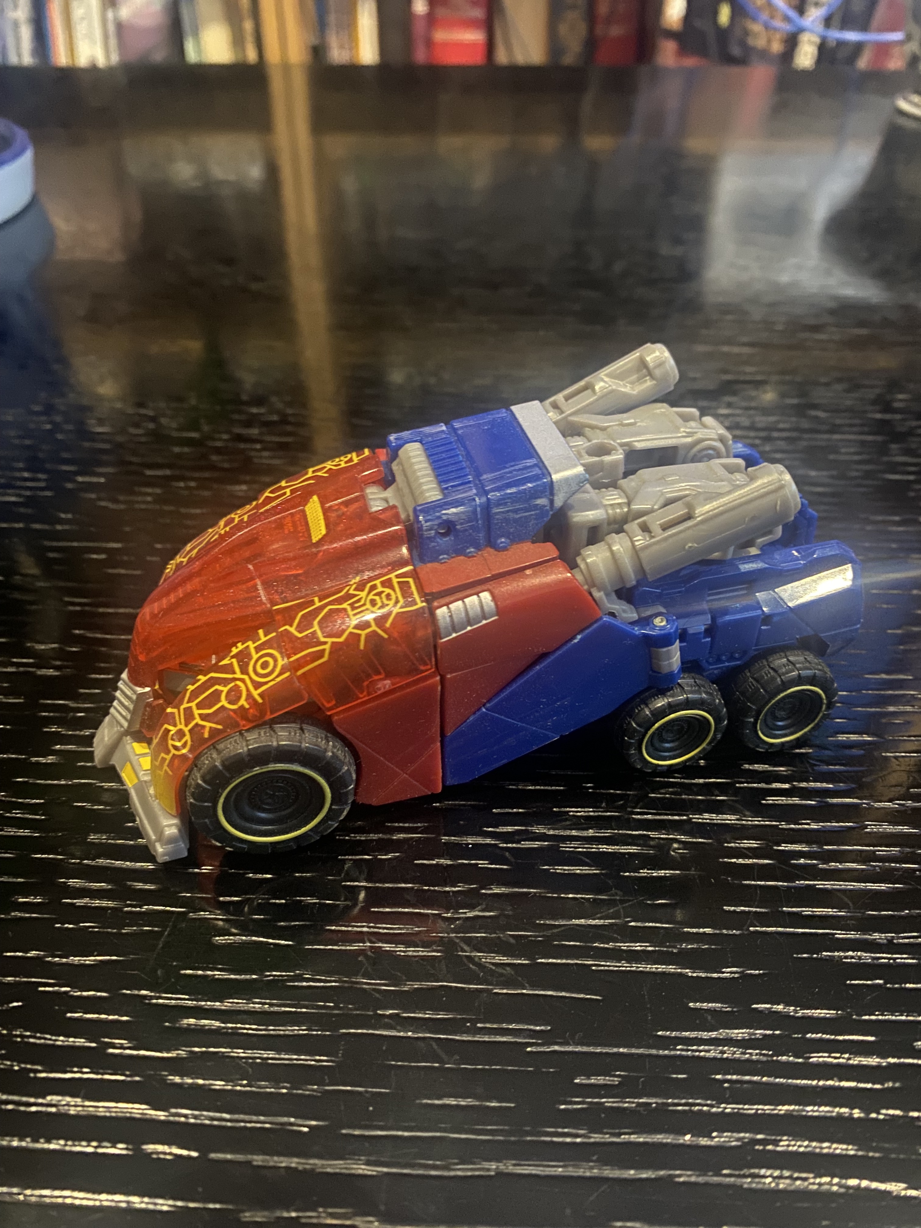 Since we got news of a possible WFC releases in. Legacy EV. I took down WFC Prime from the shelf to play around with, and yes, his transformation is still super convoluted. He has a hard time standing due to the lack of heels, and top heaviness. He looks Cool though. and yes, this version has sparkly translucent plastic.