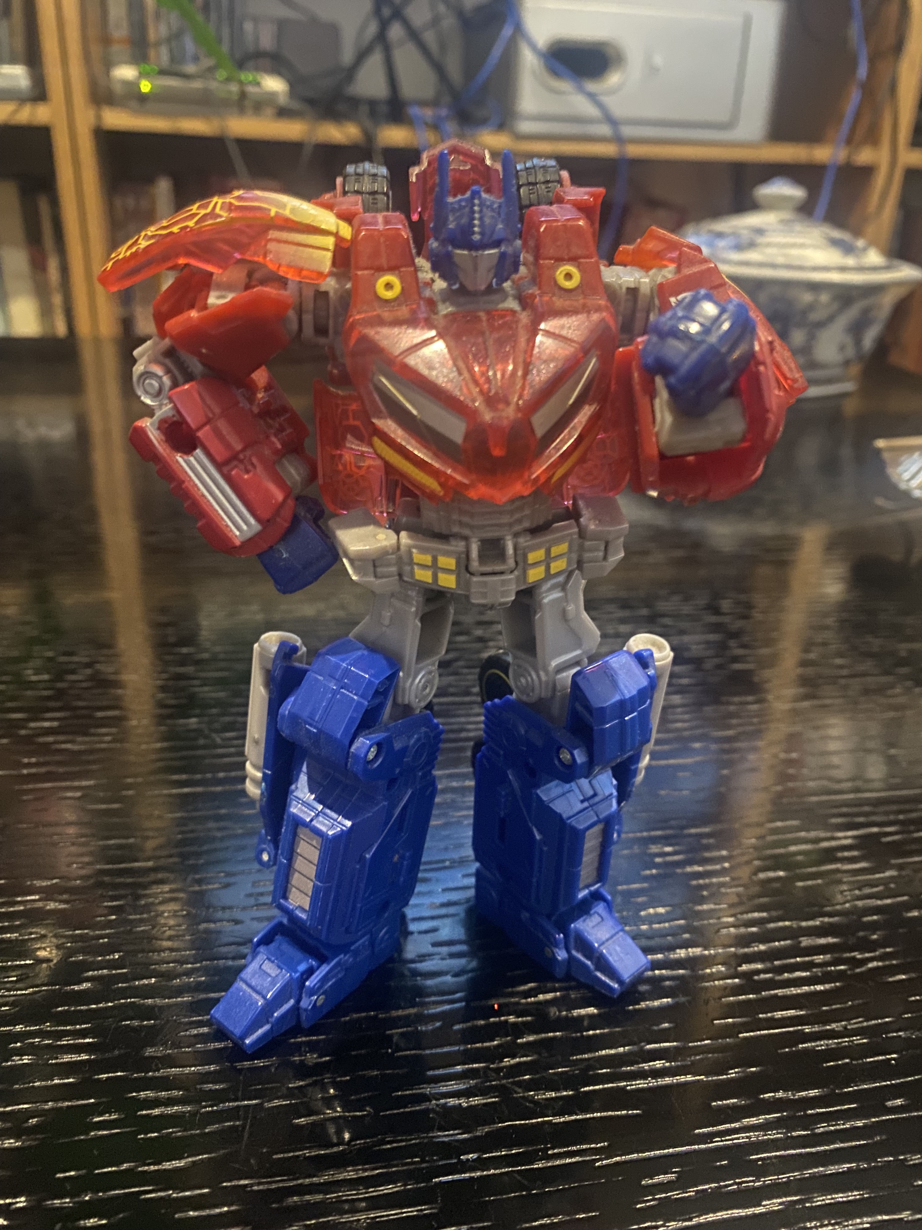 Since we got news of a possible WFC releases in. Legacy EV. I took down WFC Prime from the shelf to play around with, and yes, his transformation is still super convoluted. He has a hard time standing due to the lack of heels, and top heaviness. He looks Cool though. and yes, this version has sparkly translucent plastic.