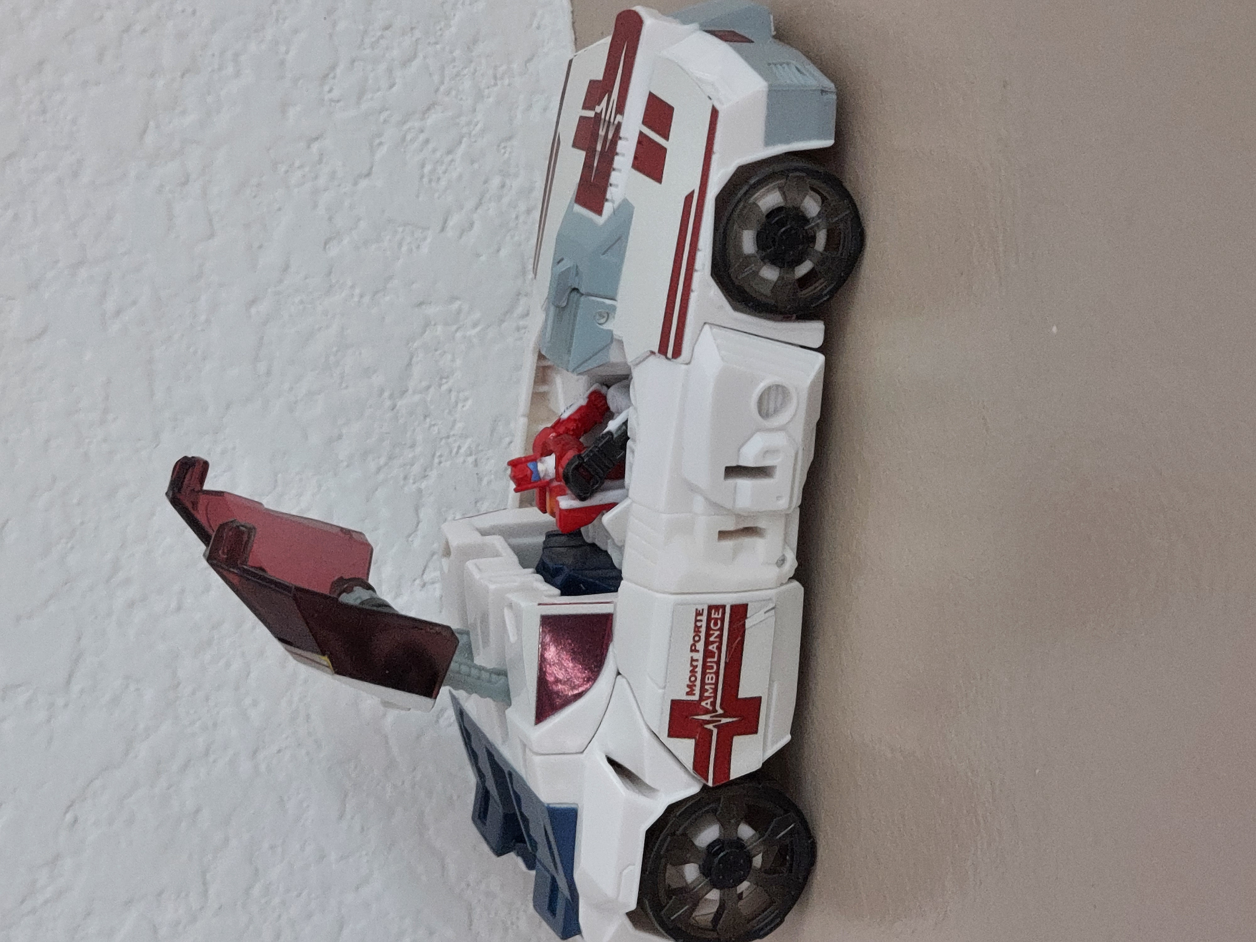 I don't think people appreciate this guy enough. Tailwhip's alt-mode is CLEAN! No robot bits poking out, no limbs dangling underneath, even his face is hidden behind a tinted cockpit. He's supposed to resemble a Hong Kong Police helicopter but I'm not sure how close to real life it is. Then you get to his robot mode and this is where problems arise. Mind you not a problem for me, I love this! Tailwhip has no real hands, but honestly I can forgive that. Despite his awkward appearance he's decently poseable! I mean, the articulation is limited, but he can still look like he's doing stuff. Also the helicopter rotors function as a spinning blade weapon, so what's not to love here?