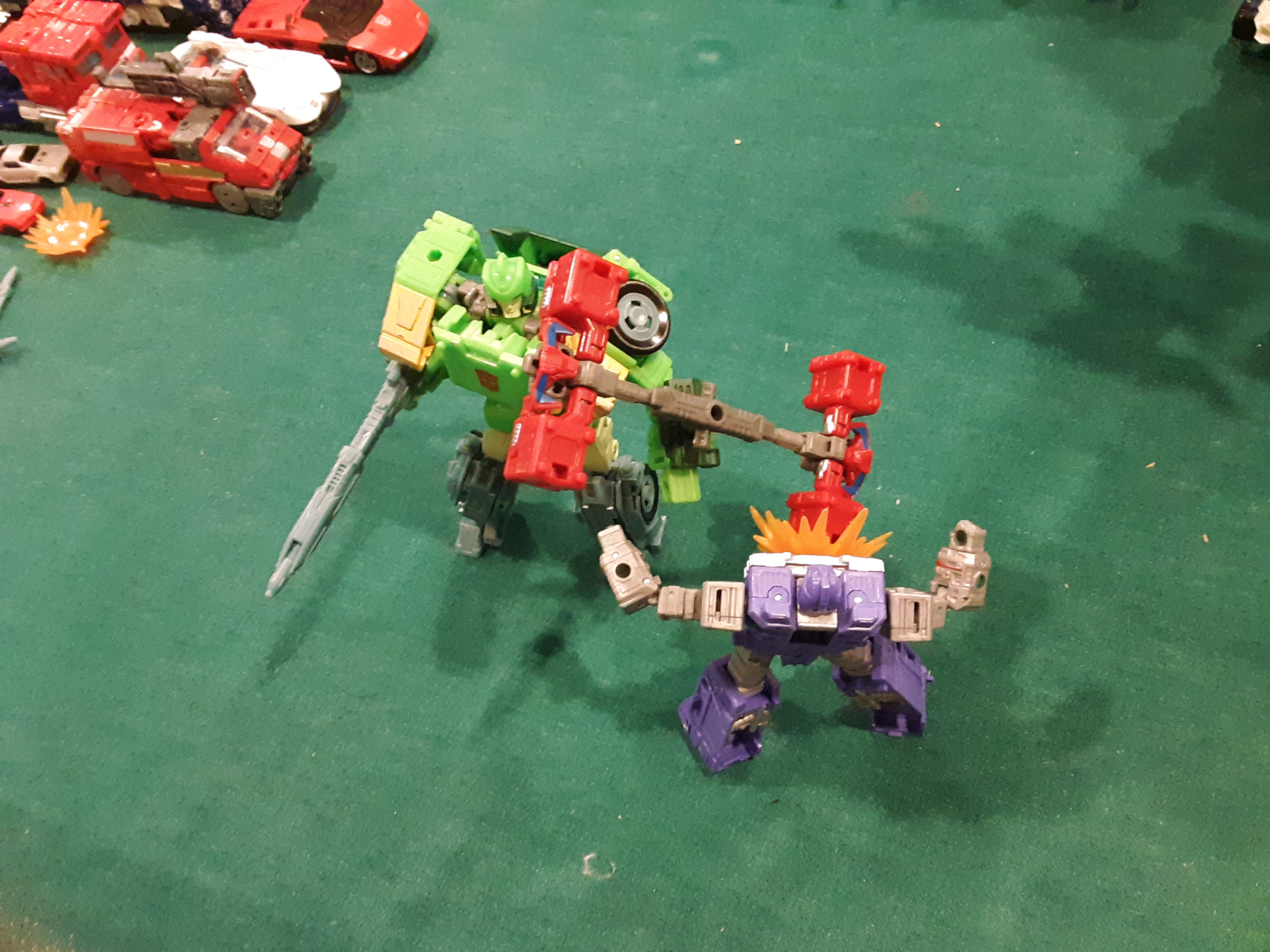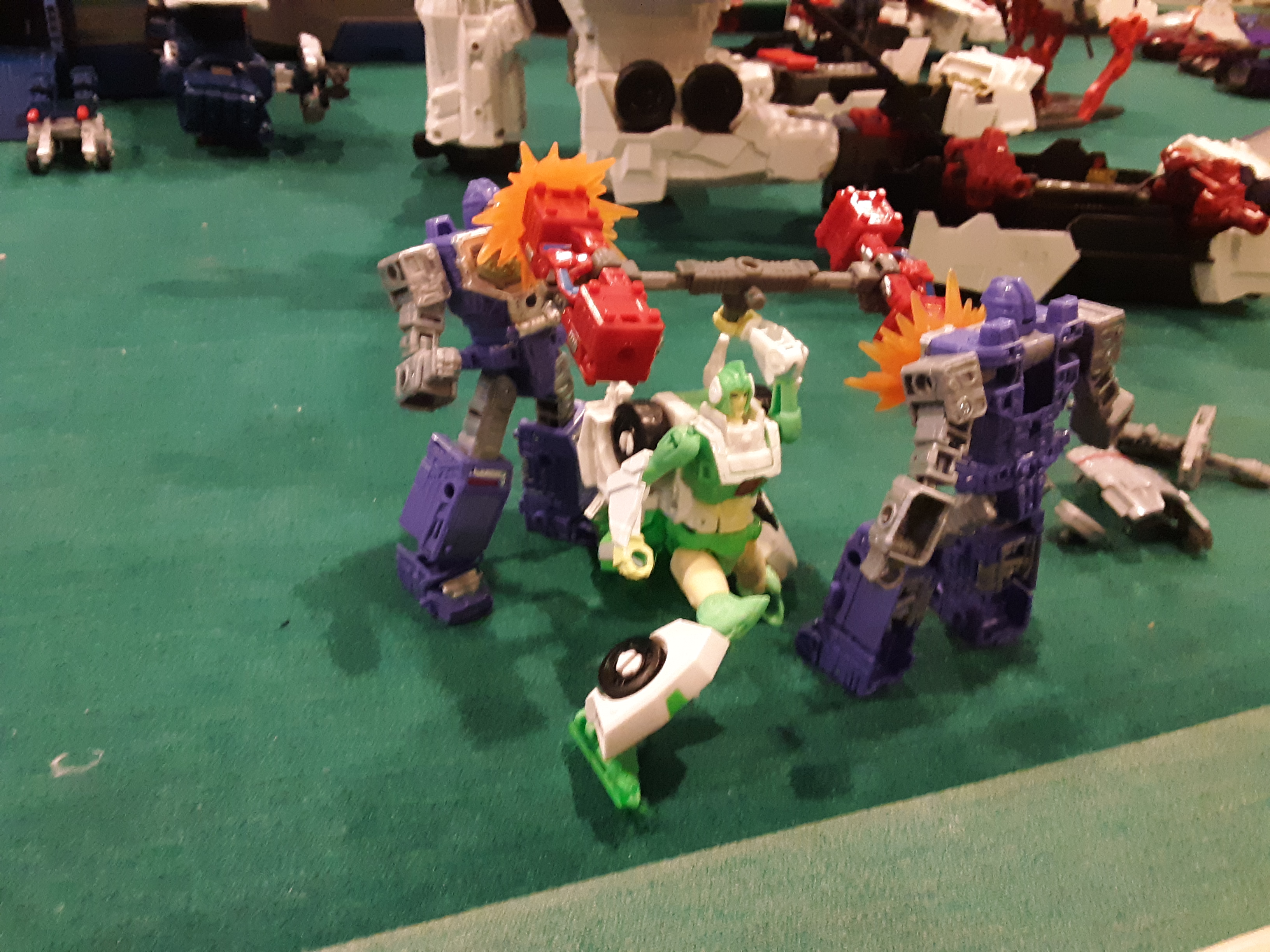Eeeeew! Great idea! Thanks! He's not using them. They're just stuck to the sides of his legs.Lunatic Prime wrote:PotP Optimal Optimus'es guns would work, too