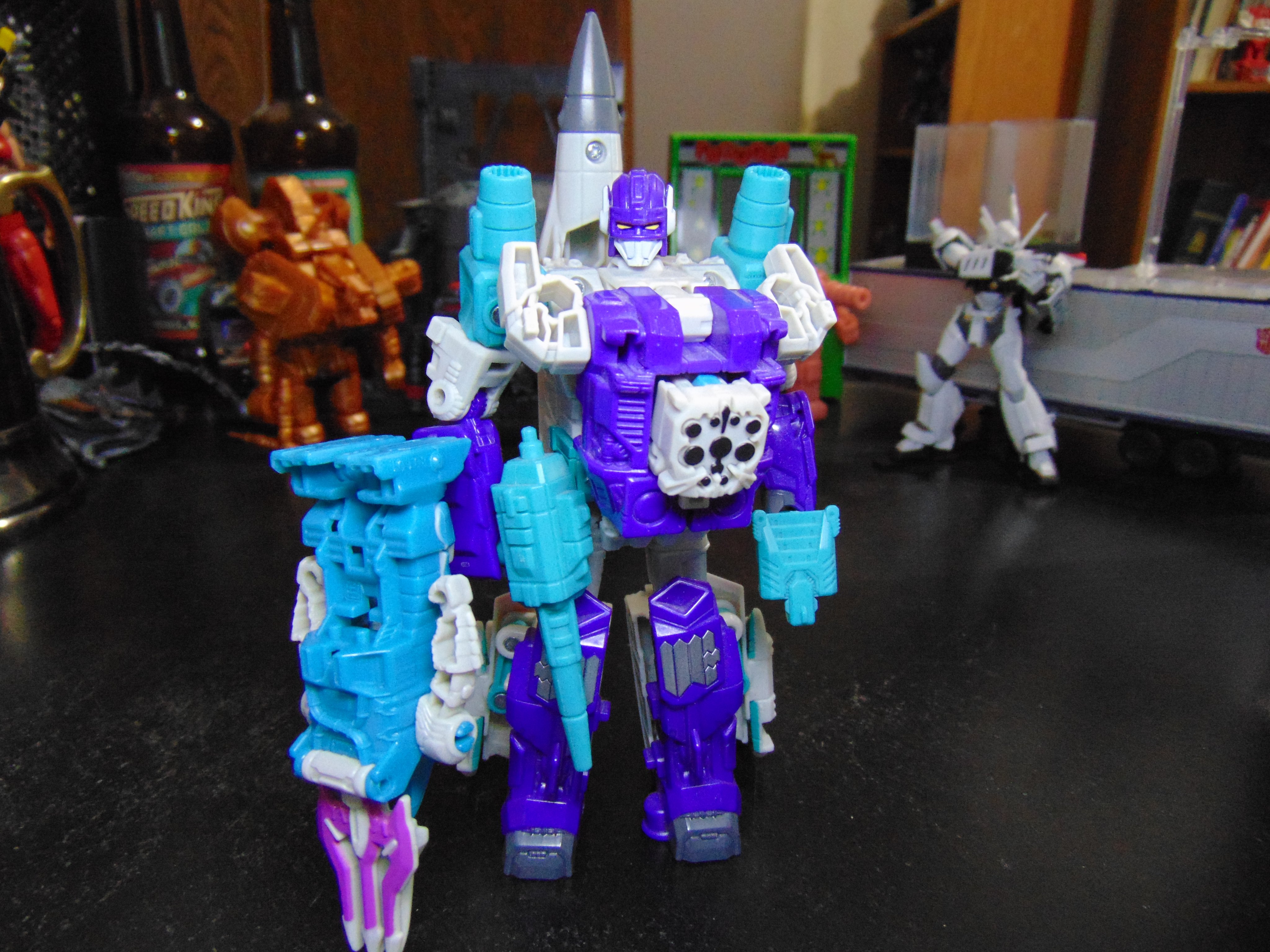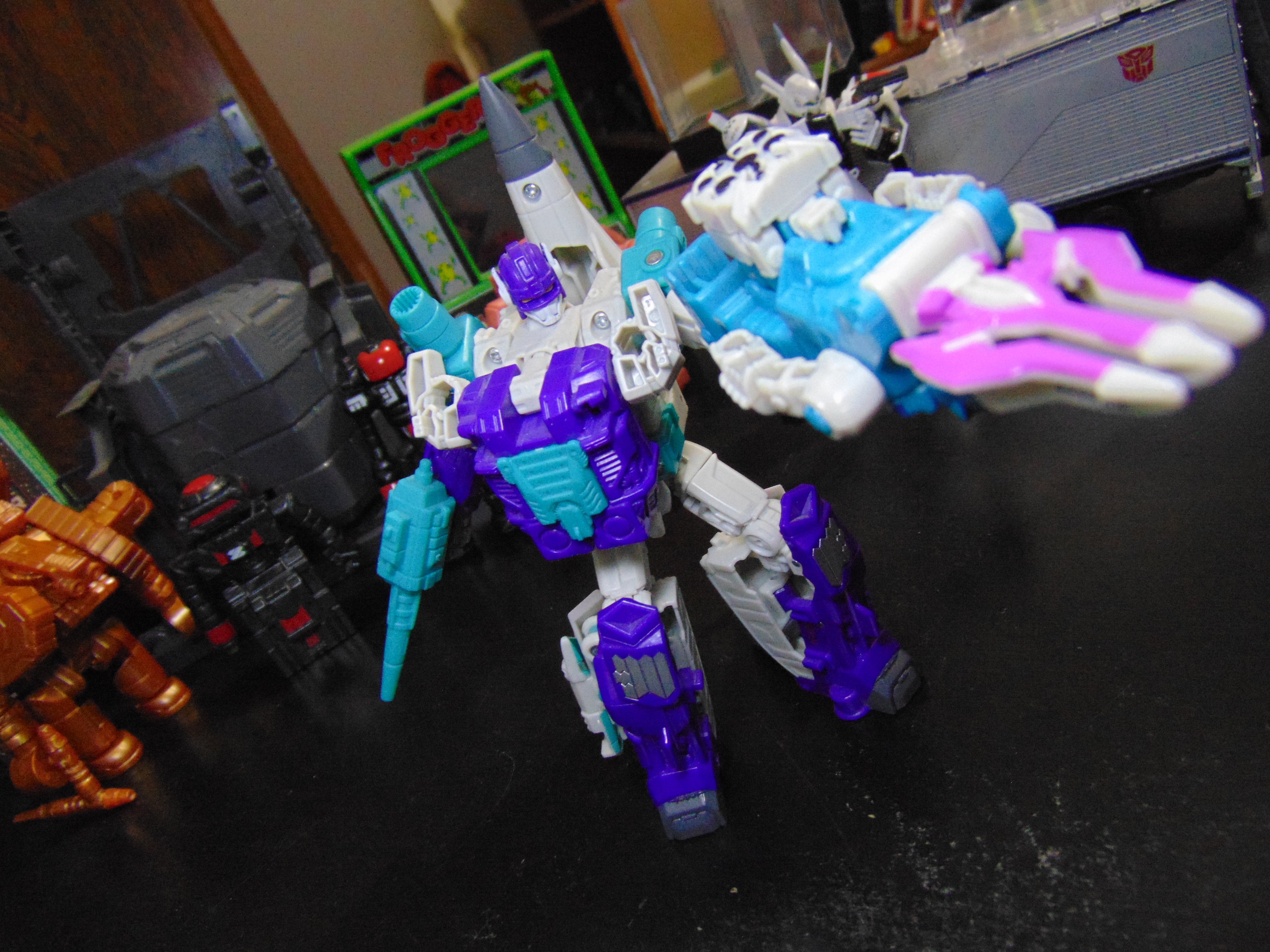 So now anyone can be a combiner as Weaponizers. I mean, I only have three weaponizers (4 with 2 Cogs), but still. Here's Sideswipe wearing his Sixgun Cog, Brunt suit!