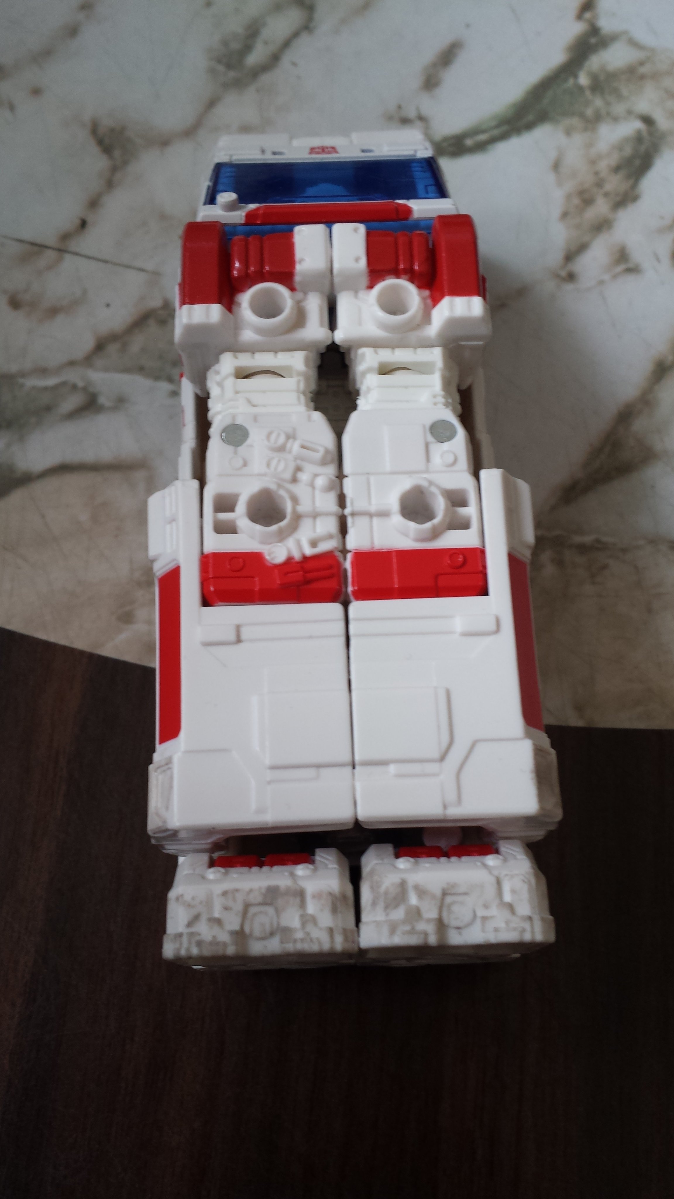 So I didn't see it in his instructions, and I don't know if any reviewers mention it (I haven't watched any reviews for this, so correct me if I'm wrong), but you can totally store all of Ratchets accessories inside his vehicle mode.