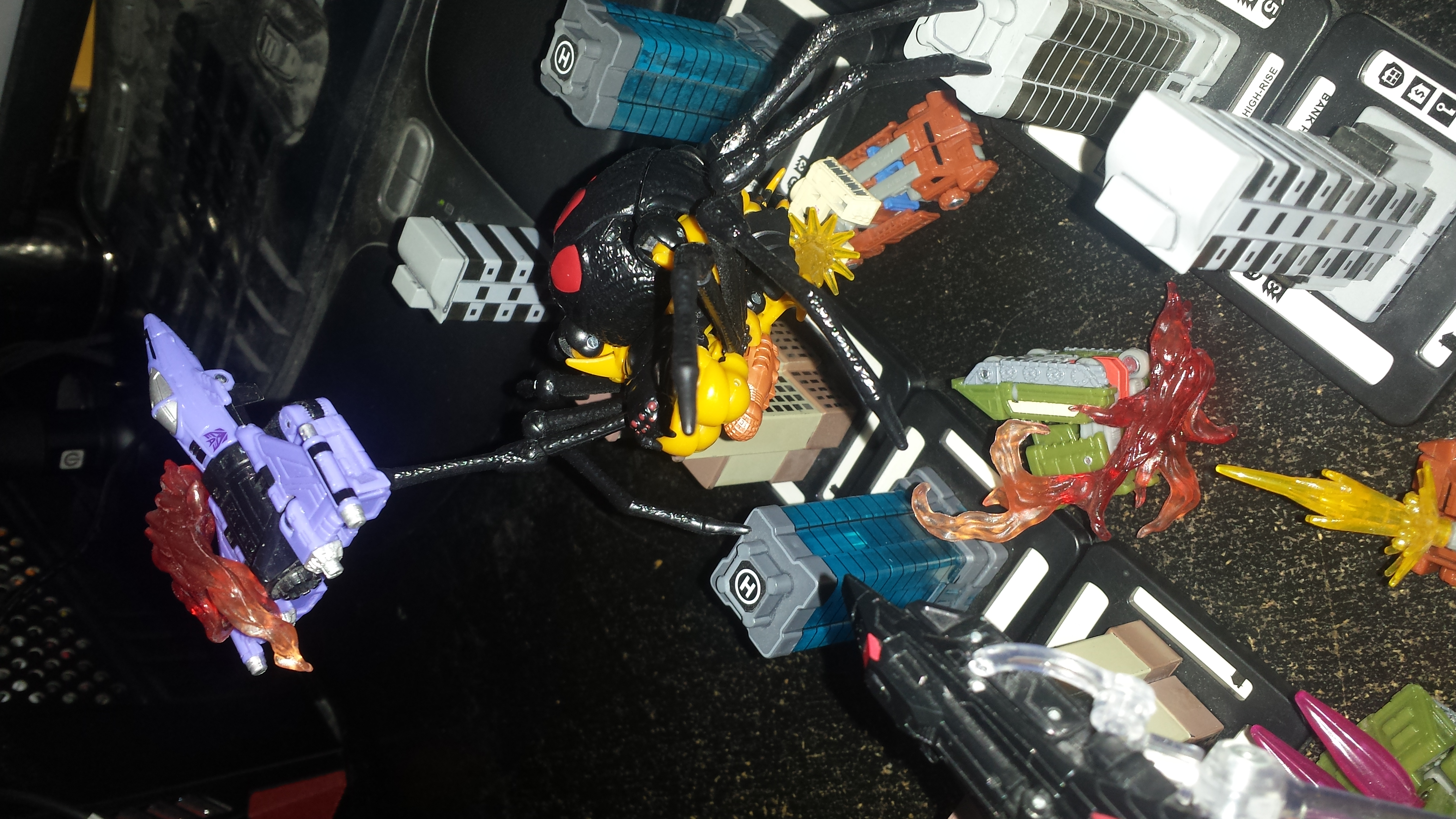 -Kanrabat- wrote:Well, more "displaying" than "posing", but I had fun with my G1 Scorponok, Micromaster Anti-Aircraft Base, and the Micromaster Constructor Squad.