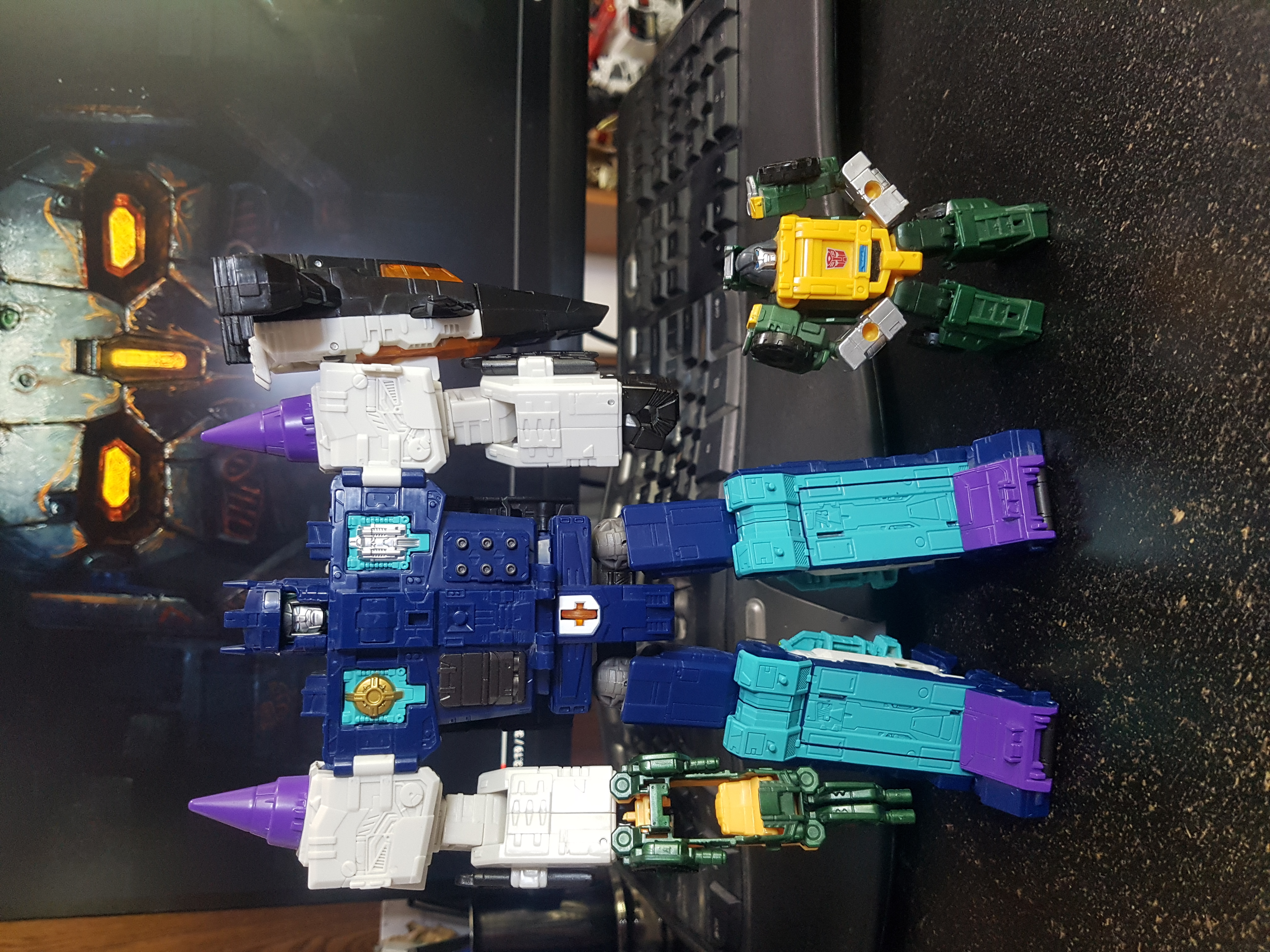 Playing with my TR Brawn add-on kit, since that's essentially what he is. I love the Takara cannon that the Brawn Titanmaster is actually Brawn while the legends-sized Brawn is a mech for the little one. Transformers is dumb and I love it~