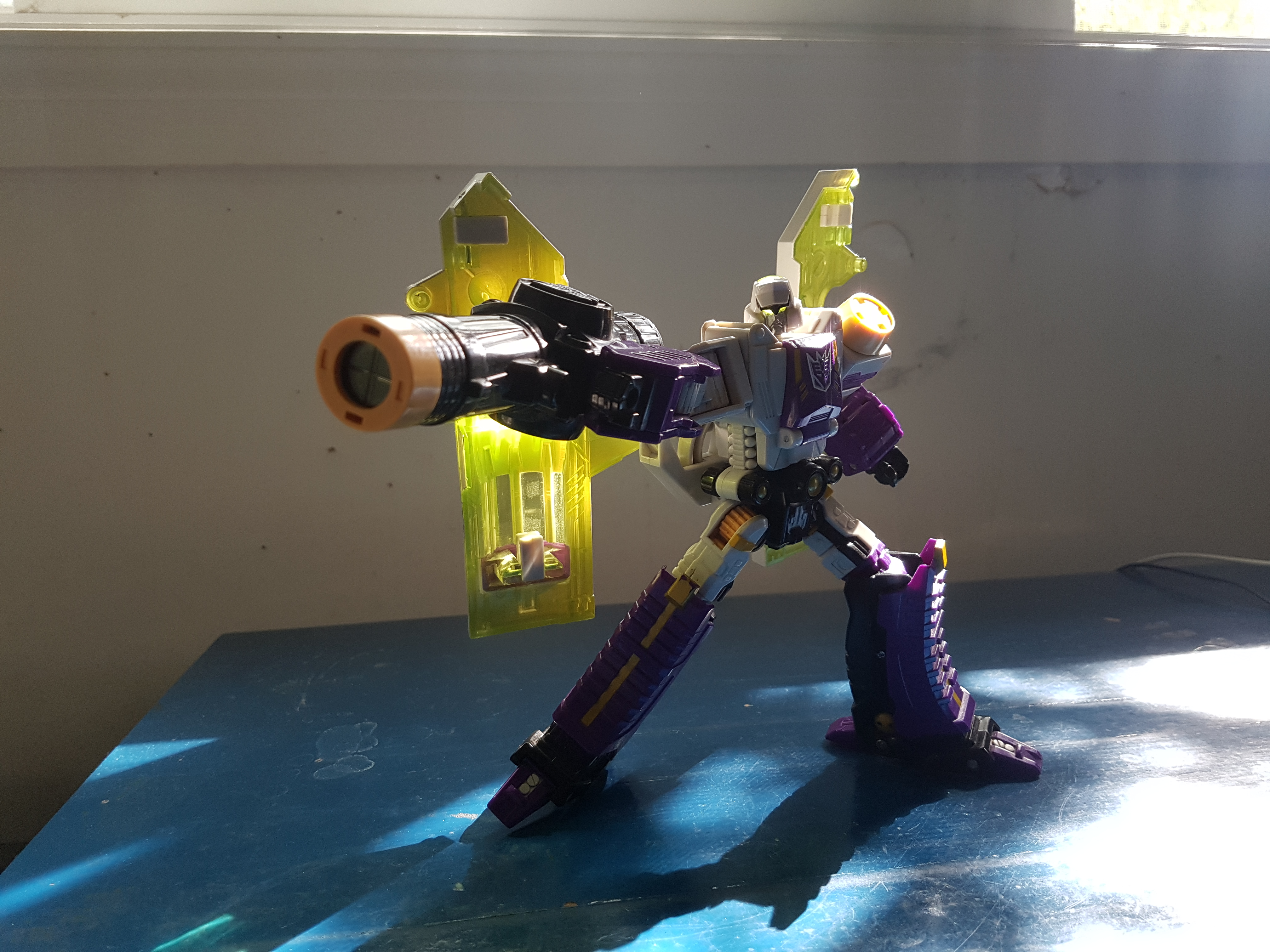 More Megatron. Classic version this time. I can honestly say that I think I prefer this one to the Siege Megatron. Not just because of the gun mode, but the entire figure feels better, you know? Not to mention the luminous lime light piping~ Seriously considering replacing my Siege Megs on my Decepticon shelf...